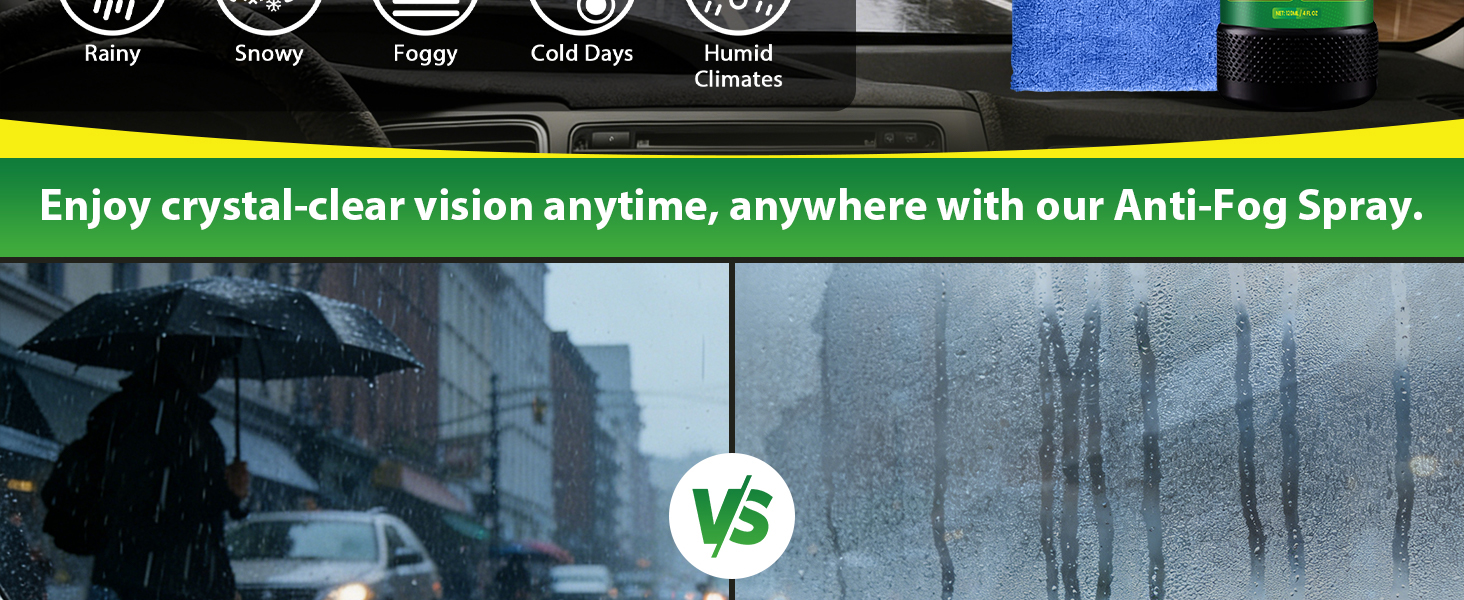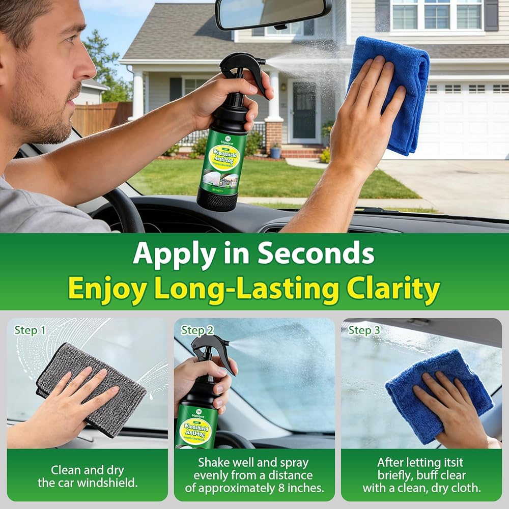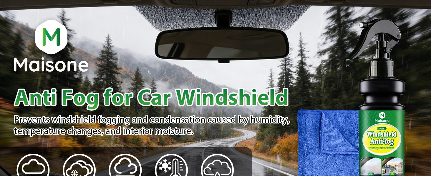 Prevents windshield fogging and condensation caused by humidity, temperature changes, and interior moisture. Anti fog glass treatment keeps car windows clear for safer driving.