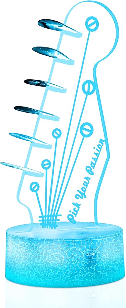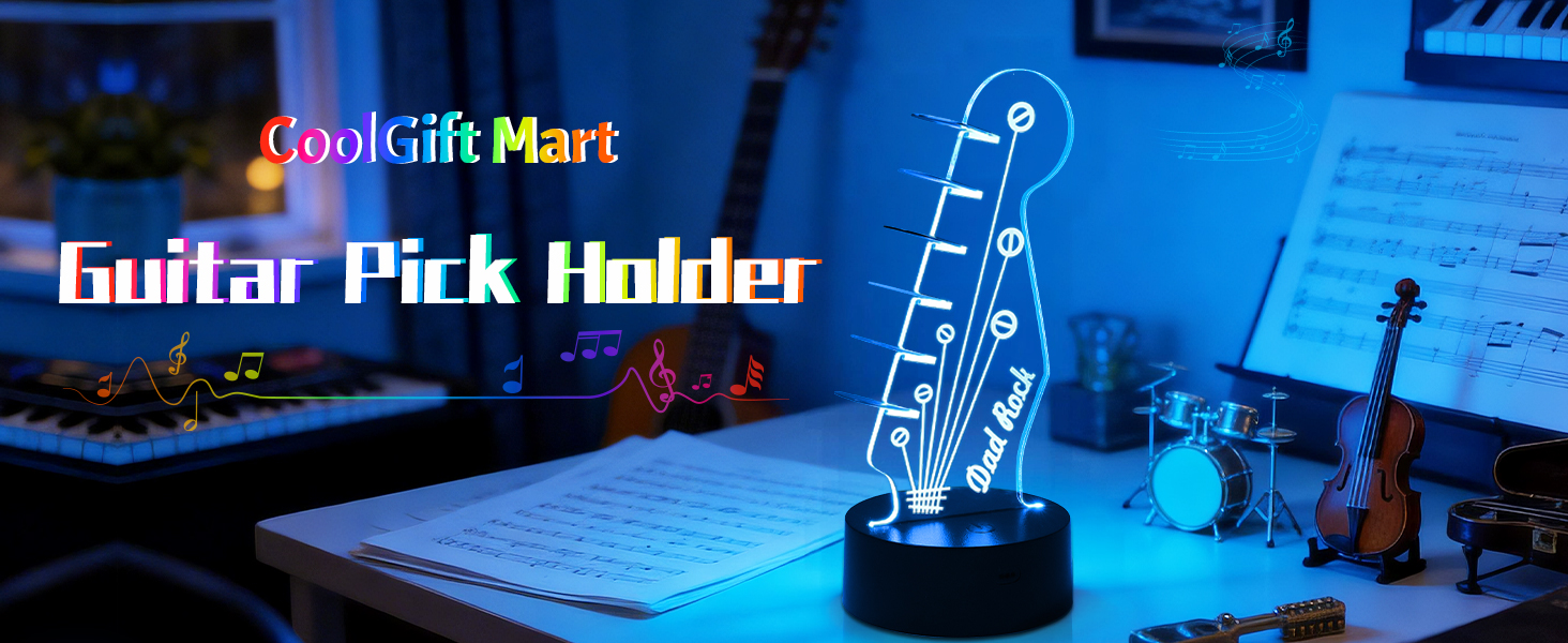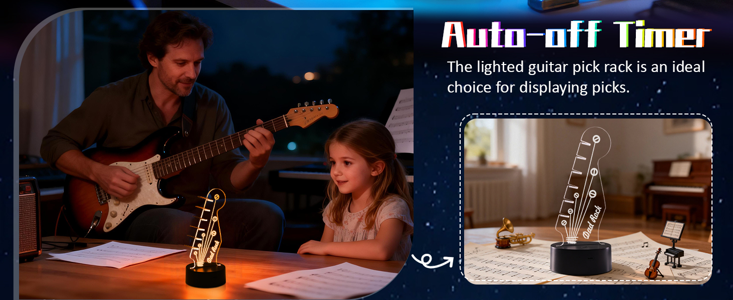 Personalized "Dad Rock" 3D Luminous Design & Pick Storage: This night light features exclusive "Dad Rock" text on the acrylic, adding a personalized touch that makes it a perfect statement piece. Beyond illumination, it offers practical pick storage—when picks are inserted, they complete an electric guitar headstock shape. This unique luminous artwork stands out from ordinary cases, providing an immersive glow that helps children sleep peacefully while celebrating Dad's rock spirit.