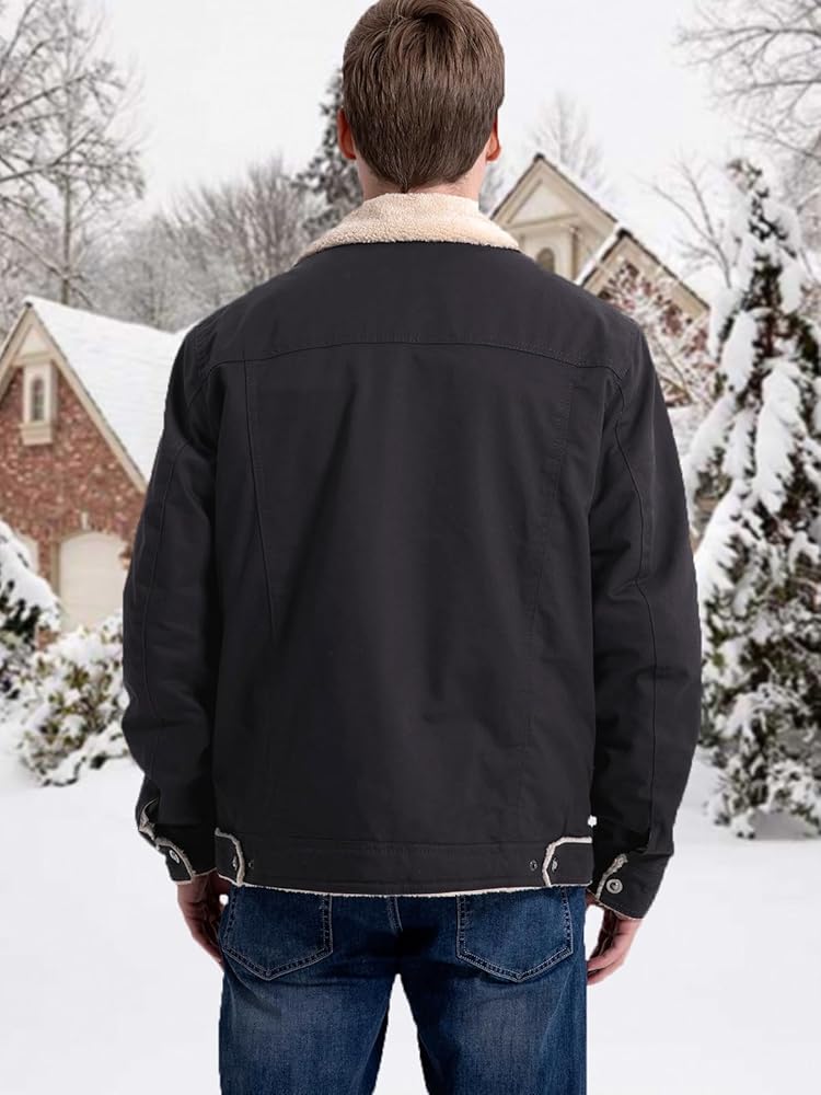 【WARM FUNCTION】The fleece collar is comfortable as well as warm to against the skin and keep wind out. The body of thick sherpa lining provide extra warm and protection when you work or casual daily. The Winter trucker Jacket keep you handsome and warm in spring, fall and cold winter.