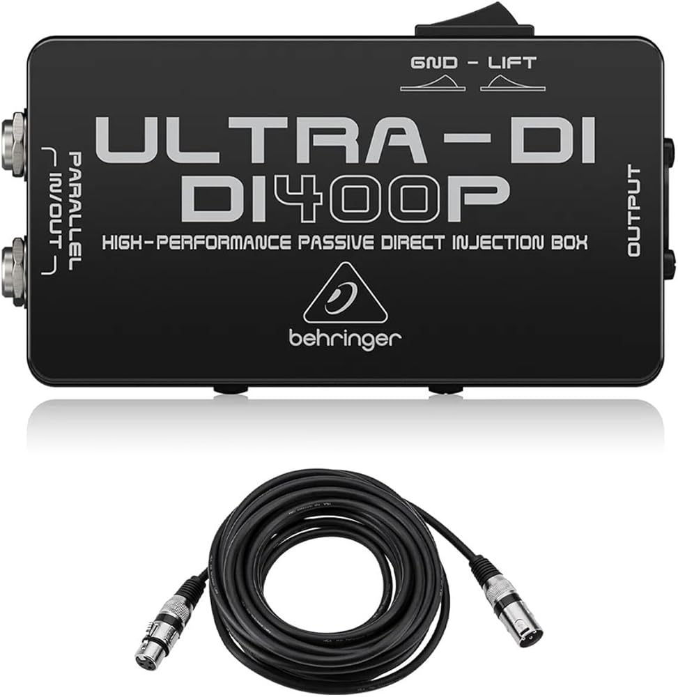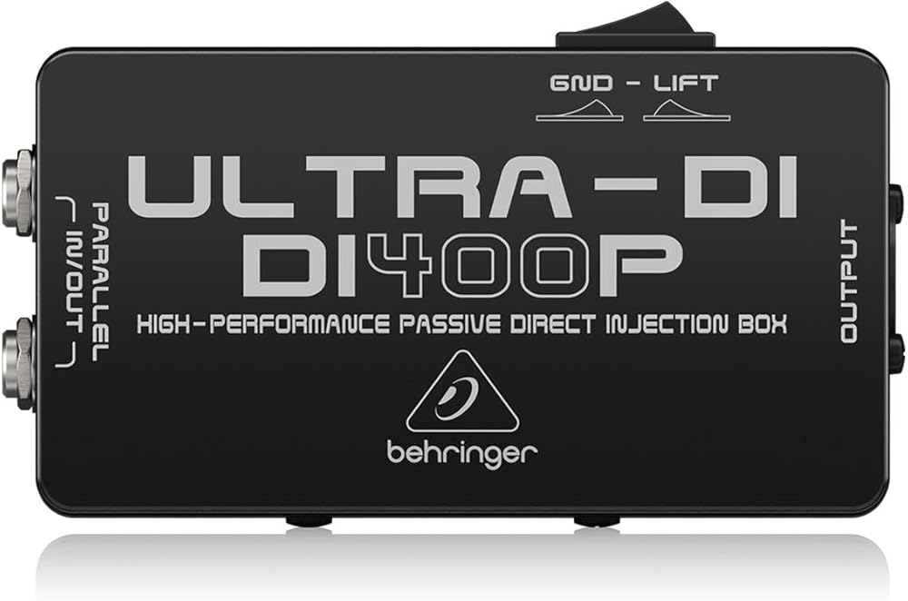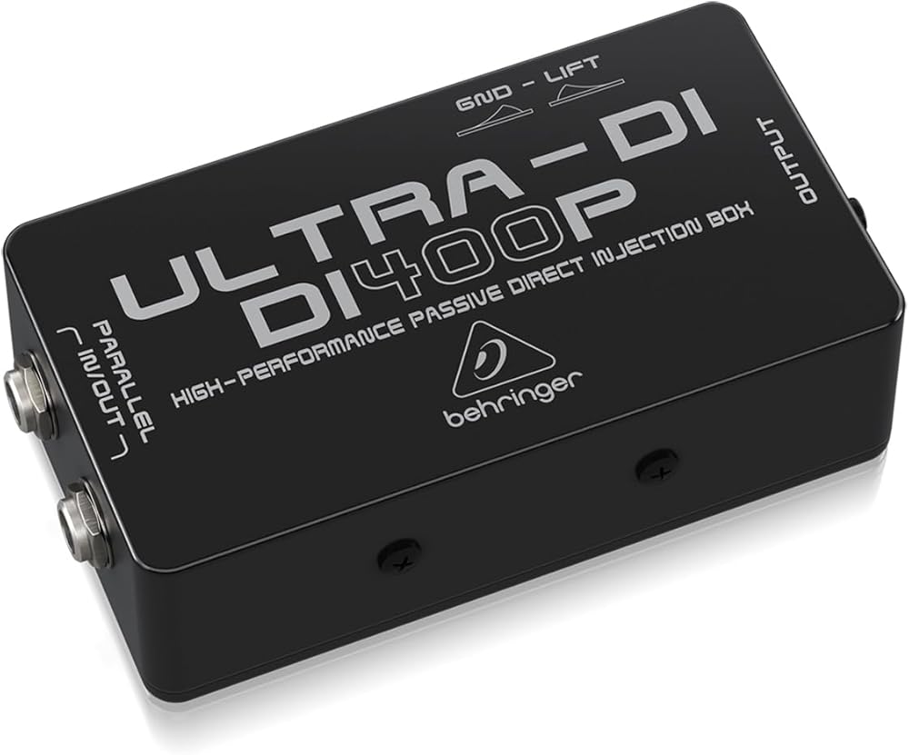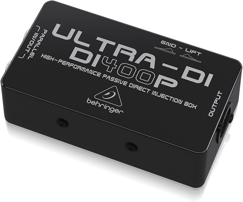 Experience the superior performance of the Behringer Ultra-DI DI400P, a high-performance passive DI-Box designed for professional audio applications. This DI-Box is an essential tool for musicians and sound engineers, enabling direct connections of guitars, basses, or keyboards to mixers without the common impedance-matching issues. The Ultra-DI DI400P is not just a passive DI-Box, it's a solution for preserving your instrument's unique tone, even over long cable runs. Its parallel 1/4" In and Out jacks allow you to simultaneously connect your instrument and send the same signal to your onstage amplifier. The XLR Output provides a balanced signal to your mixer, ensuring optimal sound quality in every performance or recording session.One of the standout features of this DI-Box is its ground lift switch, designed to eliminate the hum associated with ground loops. This, combined with a high-performance transformer, guarantees the utmost in signal integrity, delivering clean and polished sound every time.The Ultra-DI DI400P is not only high-performing but also ultra-compact. Encased in a robust, road-ready metal case, it is built to withstand the rigors of touring and frequent use. This DI-Box is an affordable solution for achieving great sound, making it a valuable addition to any musician's gear or recording studio equipment.