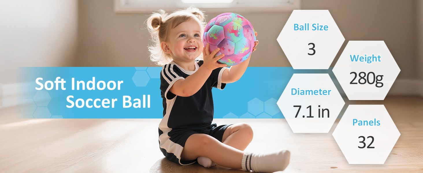 Soft & Safe for New Players: Our indoor soccer ball makes soccer lovers play safe and comfortably. The soccer ball has a soft foam core and fabric outer layer with a rubber bladder inside, the cushioned design absorbs impact and protects players from injuries during play.