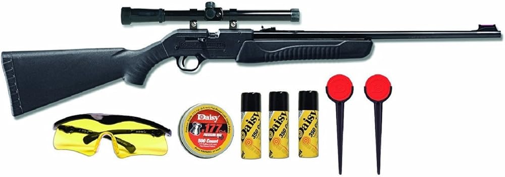Daisy Powerline 901 Multi-pump pneumatic (3-10 pumps) Bolt-action 50-rd BB repeater, single-shot pellet gun fiber optic front sight Fully adjustable rear sight (not fiber optic) 3.2 lbs. (gun only...scope & mount add about 1.25 lbs.) Includes 901 rifle, 4x15 scope, BBs, pellets, ShatterBlast targets and safety glasses Click the AMMO link to load up on BBs and pellets. Click the ACCESSORIES link to find some fun targets & other shooting gear. ... Rifle, safety glasses, 500 pellets, 750 BBs, 8 ShatterBlast targets w/2 stakes, 4x15 scope w/rings...