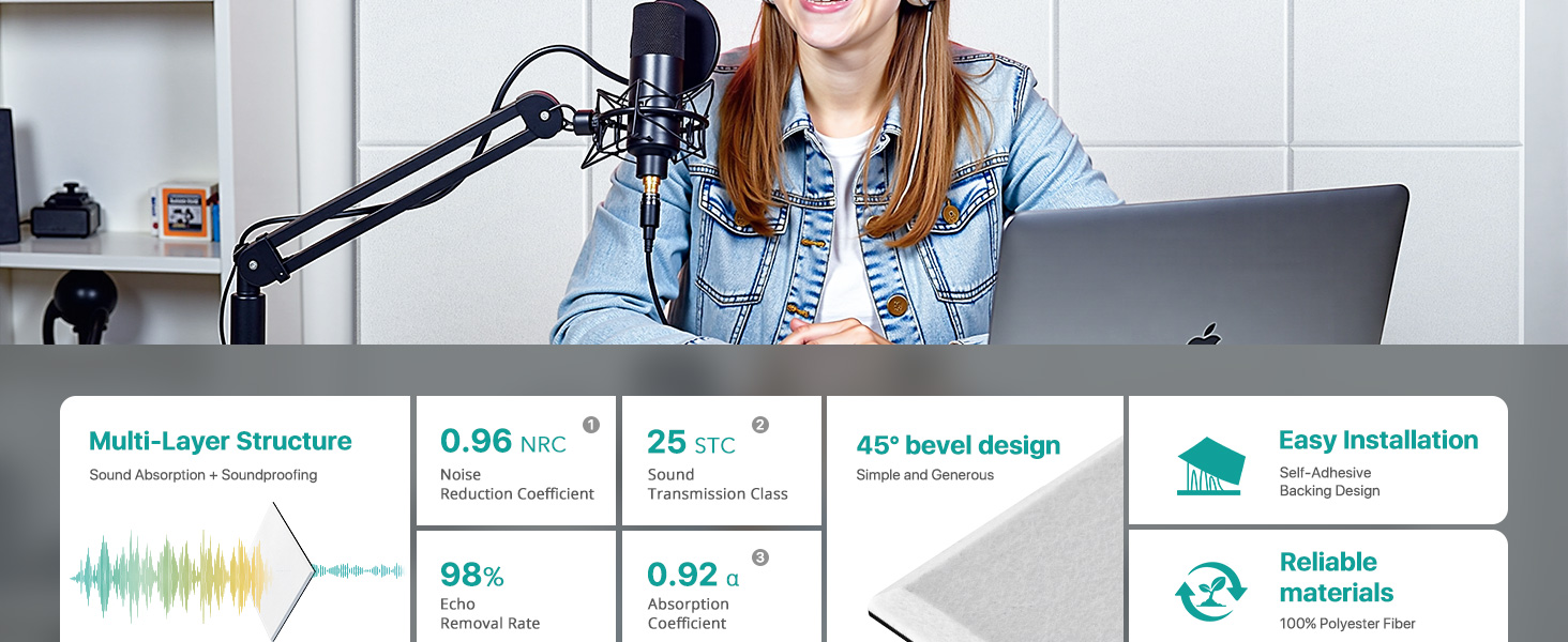Widely Used: Suitable for homes, offices, recording studios, live broadcasts, conference rooms; Improves acoustic environment; Improves sound quality and comfort