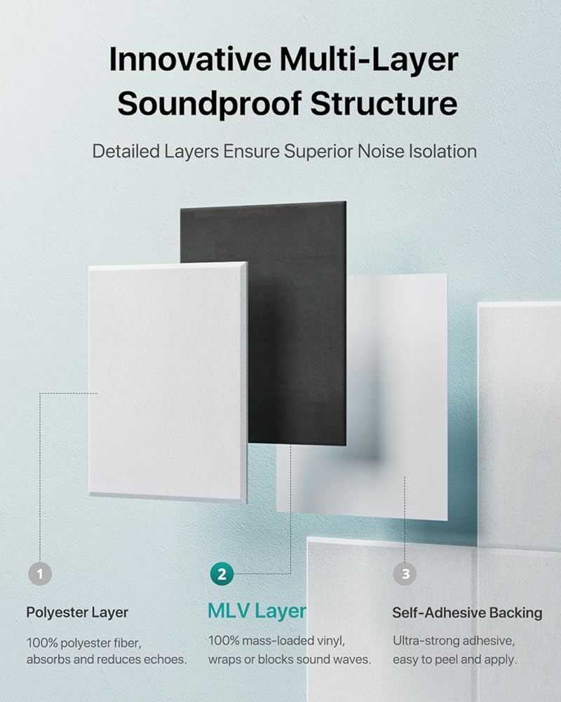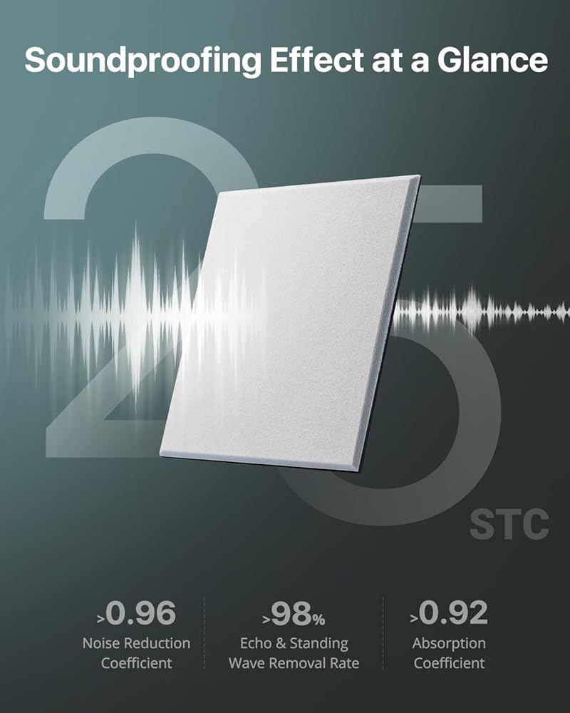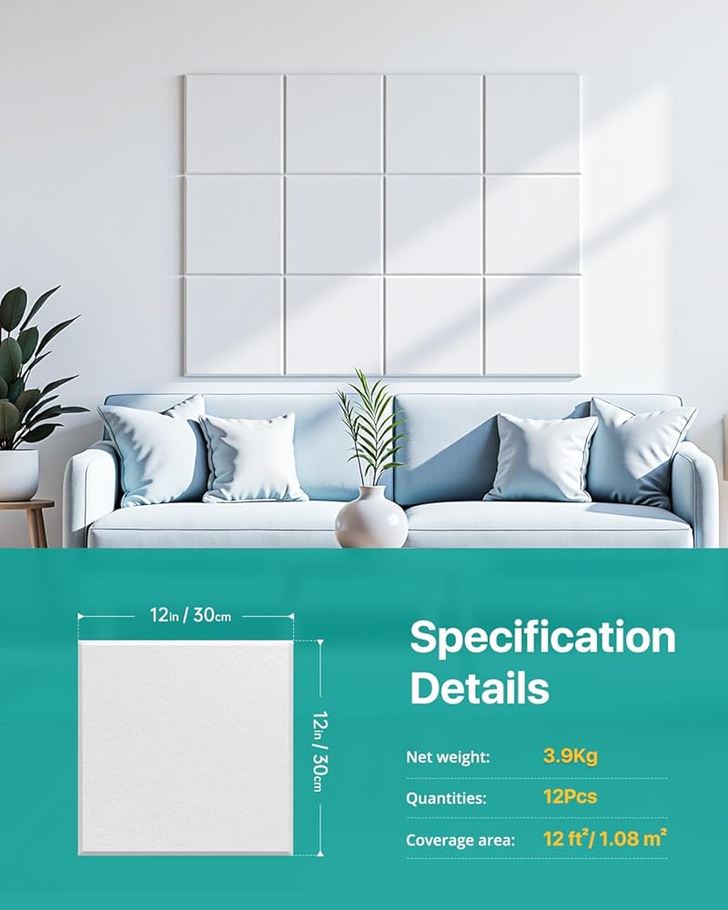 Easy to Install: Self-adhesive acoustic panels; No additional tools; Easily stick to walls, doors and ceilings; Quick and easy to install