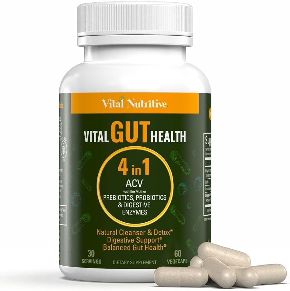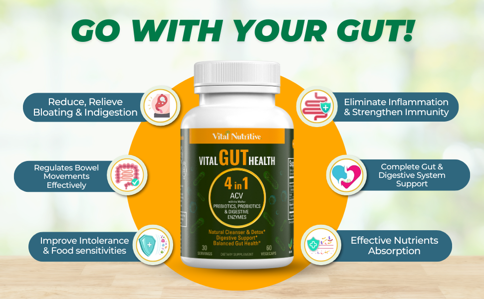 Vital Gut Health 4in1 Formula with Apple Cider Vinegar, Prebiotics & Probiotics, Digestive Enzymes for Strong Immunity Support and Complete Gut and Digestion Support- 30 Days Supply