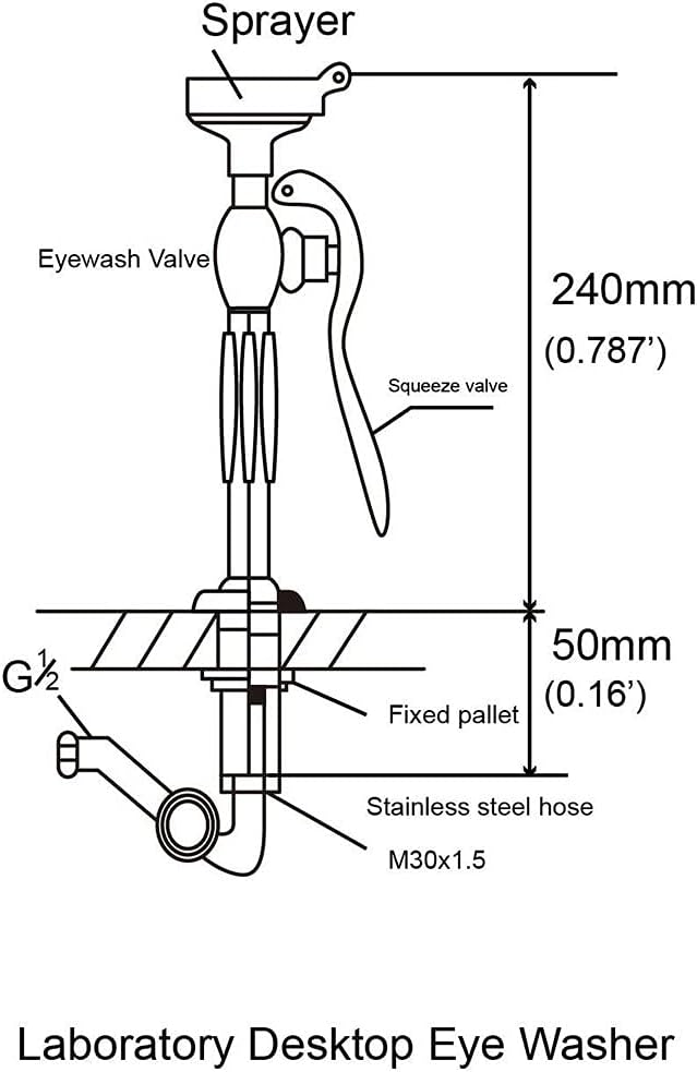 1.5m Stainless Steel Hose- This handheld eye washer is equipped with a 1.5m stainless steel hose, which enables users to wash within this distance.