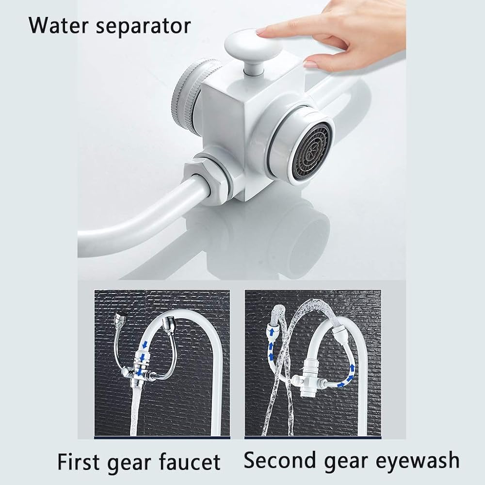• 【Features】: Built-in water divider, can be divided into two levels of water, the first level is for the tap to open, the second level is for the eyewash, and it can also be rotated 180 degrees to meet the cleaning needs of different angles