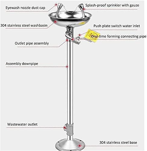 Eye Wash Station Eyewash Station Stainless Steel Eyewash, Vertical Type Emergency Eyewash Gentle Flow Water Double Nozzle for Factory Power Station Chemical E