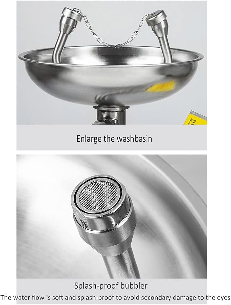 • Double Eyewash Spray Heads: The multi-layer filter screen is built in the eye wash nozzle to effectively filter impurities in the water and make the water flow into a foamy water column, effectively preventing impurities in the water or causing secondary damage to the injured.