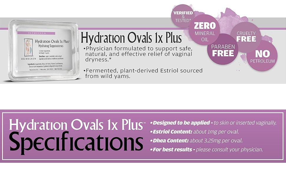 - Bezwecken Hydration Ovals 1x Strength Plus DHEA are commonly used for vaginal dryness associated with menopause