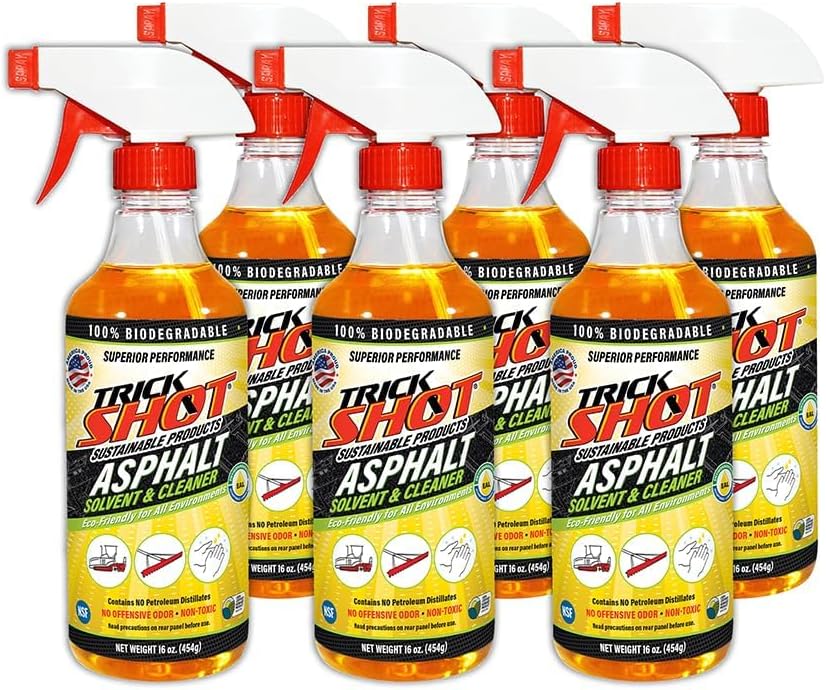 ASPHALT REMOVAL FORMULA: Asphalt remover and automotive degreaser dissolve deposits from paving equipment, vehicles, garage doors, and tools. Removes asphalt sealant and bitumen buildup. Effective cleaning supplies for industrial applications, home improvement projects, and roof cleaner for asphalt shingles.