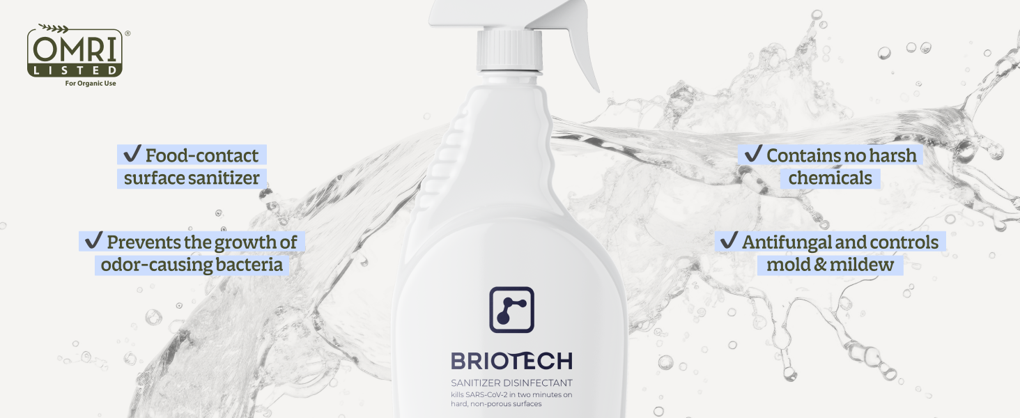 OMRI CERTIFIED (for organic use). Kills bacteria that can cause foodborne illness or food poising such as Salmonella, E.coli, and Listeria. No rinse, ready to use sanitizer for food-contact surfaces, kitchens, restaurants, and food processing facilities.