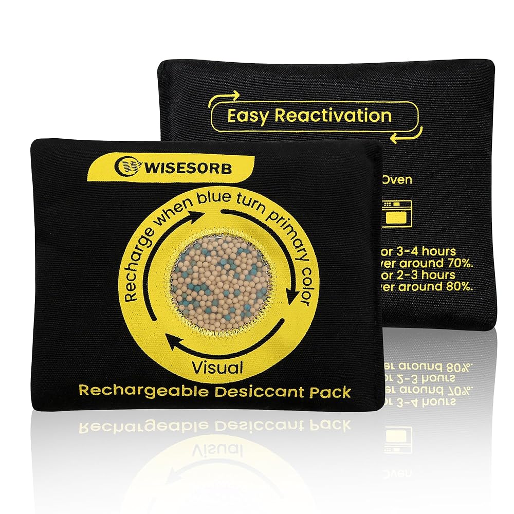 Experience reliable, long-lasting moisture protection with our Reusable Molecular Sieve Desiccant Packs. Designed with a clear visual humidity indicator, the beads change color from blue to their original hue as they near saturation, so you know exactly when it's time to reactivate—no guesswork needed. The sleek printed design with an enlarged transparent window ensures easy monitoring at a glance, while each pack is individually sealed for safe and convenient use. Built for repeat use, these packs can be recharged in an oven at 120°C for 3–4 hours (≈70%) or 150°C for 2–3 hours (≈80%), or quickly reactivated in the microwave at 700W for 3–4 minutes, pausing every minute to avoid overheating. Perfect for gun safes, electronics, 3D printing filaments, optics, storage bins, RVs, closets, and toolboxes, molecular sieves provide superior moisture control even in ultra-low humidity environments—far outperforming traditional silica gel.