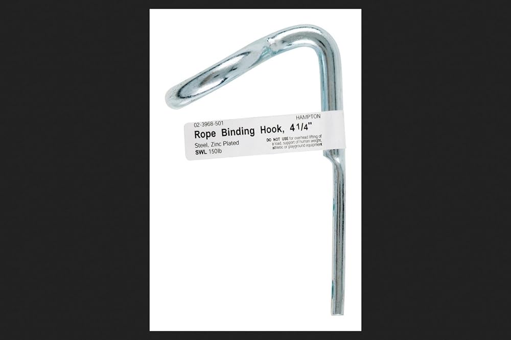 - Brand Name: Hampton Size Class: Small Finish: Zinc-Plated Color: Silver Material: Steel Length: 4.125 in. Product Type: Rope Binding Hook Capacity: 150 lb Number in Package: 1 pk Hook Diameter: 1 in. Hardware Included: No