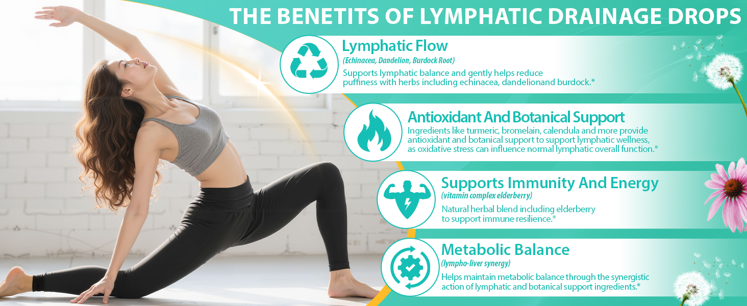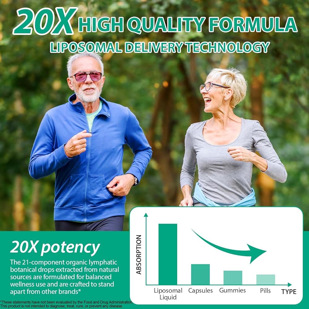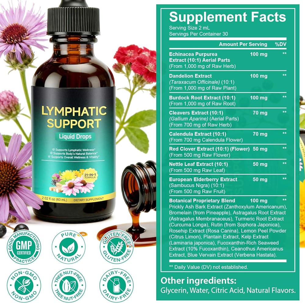 Lymphatic Support & Balance – Our advanced lymphatic drainage formula is designed for rapid absorption, offering fast-acting support to promote proper lymphatic function. This comprehensive blend helps maintain balance, boost your body's natural cleansing process, and keep you feeling refreshed and revitalized.