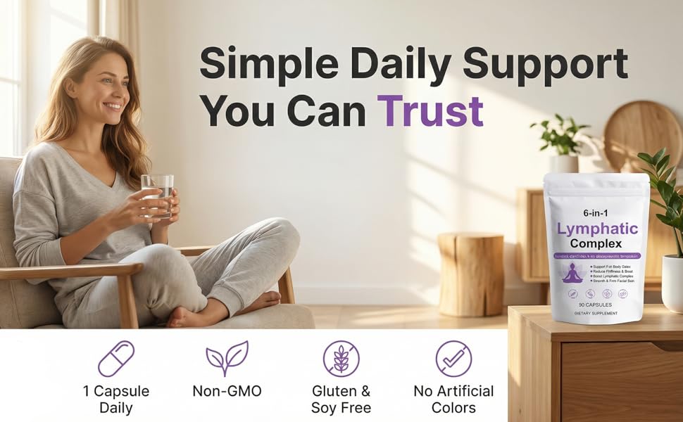【Gentle Daily Lymphatic Support】This 6 in 1 lymphatic complex is made with six traditionally used herbs to support everyday balance and make wellness routines simple and easy to maintain.