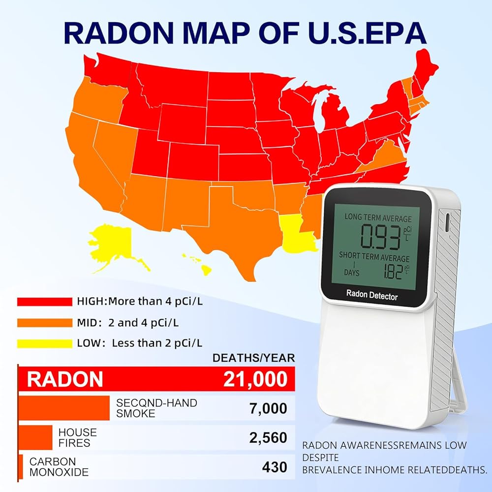 【Long Battery Life】Our radon meters' battery using 3 x AAA batteries can work continuously for 3 year.【Durable Sensor Lifespan】Our radon detector includes a 10 year sensor lifespan.