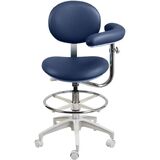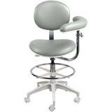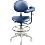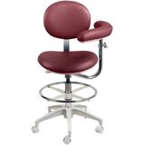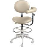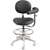 AmeriCan Goods High Quality Professional Doctor Classical Assistant Stool stool helps relieve lower back pressure and maintain healthy posture. Dental stools are equipped with a height adjustment mechanism, allowing dentists to customize the chair's height and rotate 360 degrees the armrest/backrest according to their preferences. - Contoured seat for increased comfort, with a 18.5” width, 17” length - Round backrest has a 16.5” width and 13.5” height - Adjustable seat height and width between backrest and seat - Seat base has a 23” diameter - Seat height can adjust between 18.5” and 24” - Comes with the assistant stool foot ring and armrest