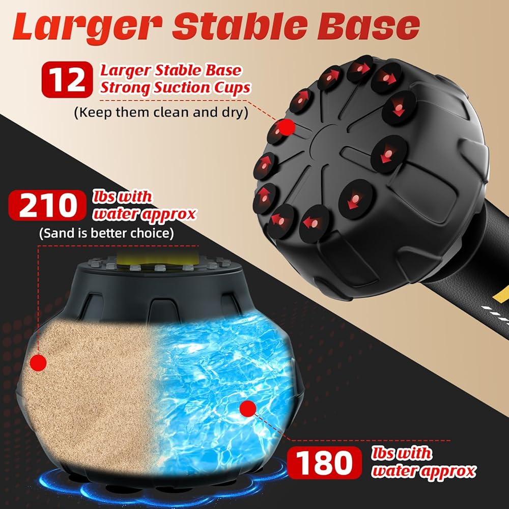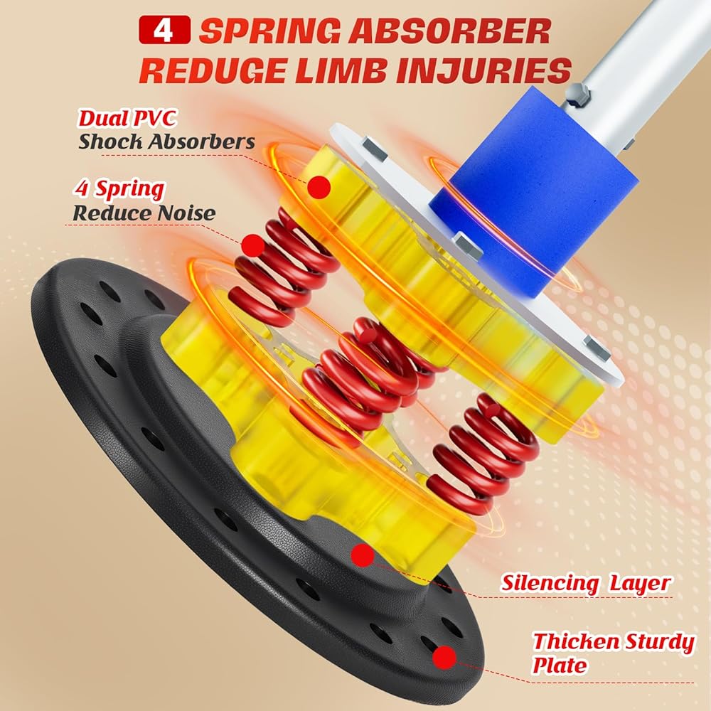 Stable Floor Sucking Base:Thicken ABS round base with 12 strong suction cups help keep the bag in place on smoonth and even floors. When filled with sand, the base weighs up to 205lbs, ensuring maximum stability during your workouts;For Less Vibration, Please remove the springs.