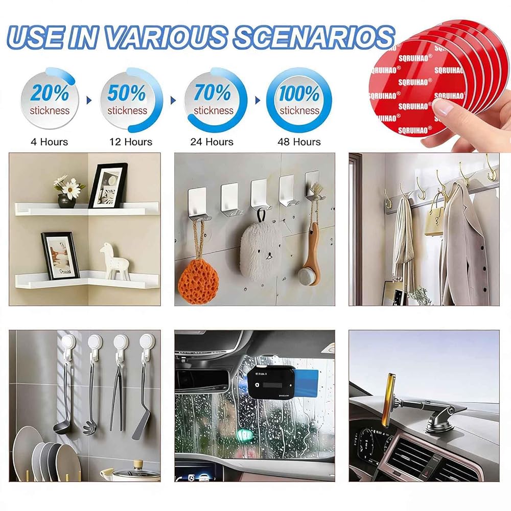 Double Sided Adhesive Pads: Contains 20 pieces Made double sided tape heavy duty, square 1x1 Inch, to meet your wider use. And two alcohol pads