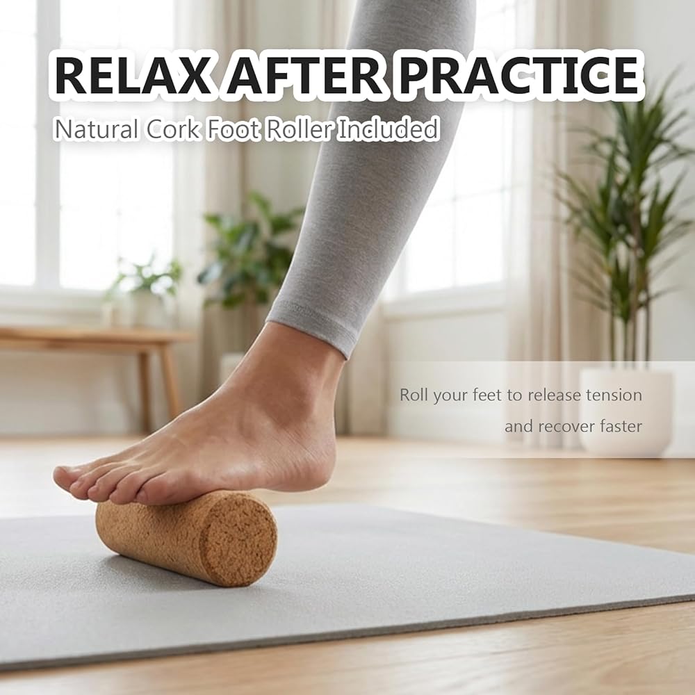 Acupressure Foot Massage & Recovery The nail board stimulates foot pressure points for grounding and awareness, while the cork massage roller helps gently release tension and relax the feet after standing practice.