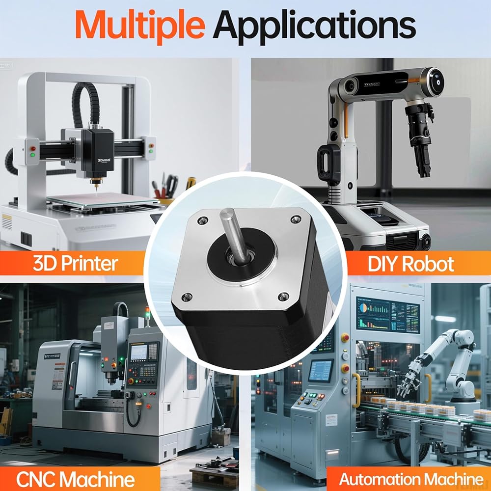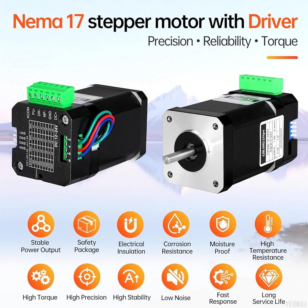 Elevate Your Equipment:Leveraging reinforced steel cores and meticulously wound coils, this Nema 17 Stepper Motor with Stepper Driver offers up to 20% increased holding torque versus standard units. Benefit from a quieter operational profile and minimal environmental disturbance.