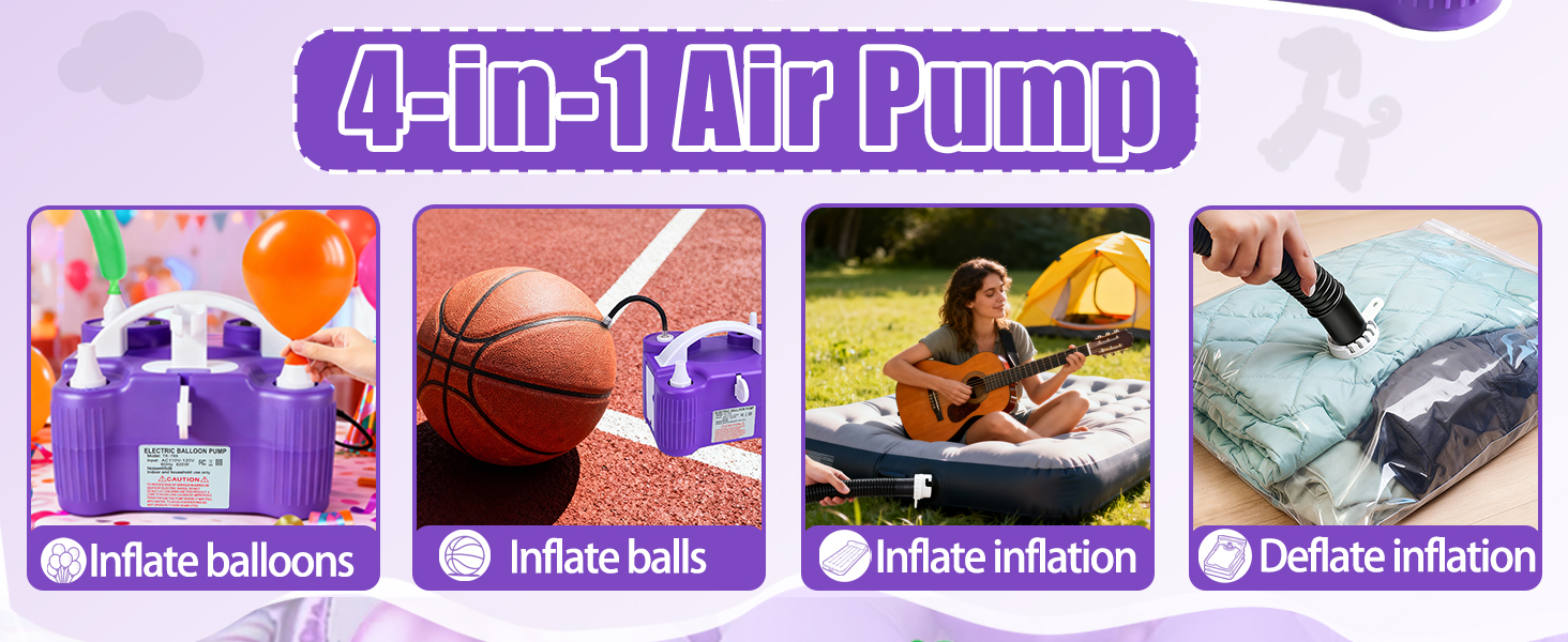 [4-in-1 Air Pump] Suitable for all balloons, inflatable products, vacuum storage bags, basketballs, and other small balls.