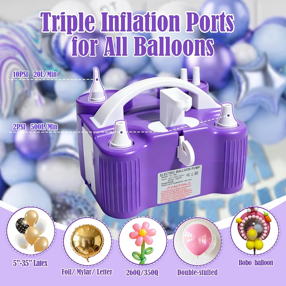 [Triple Inflating Ports] The balloon pump can inflate three balloons simultaneously. Suitable for all types of balloons, including 5-36" latex, mylar, letter, 260q, 350q, double-stuffed, bobo balloons, etc.