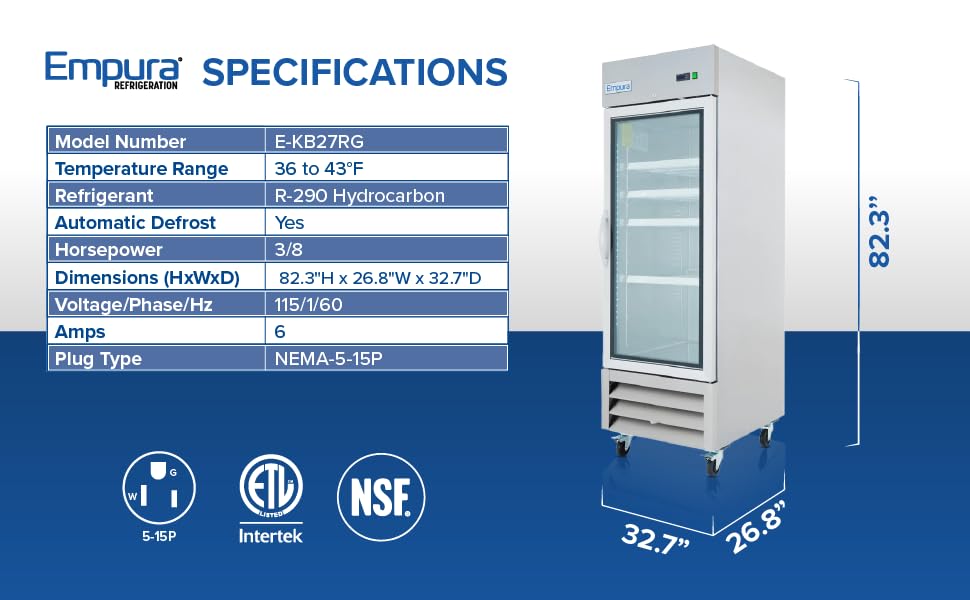 USER-FRIENDLY CONTROLS: Equipped with an electronic thermostat and a digital LED temperature display for straightforward, accurate temperature control. The intuitive interface allows users to easily monitor and adjust settings, ensuring optimal performance and compliance with specific cooling requirements.