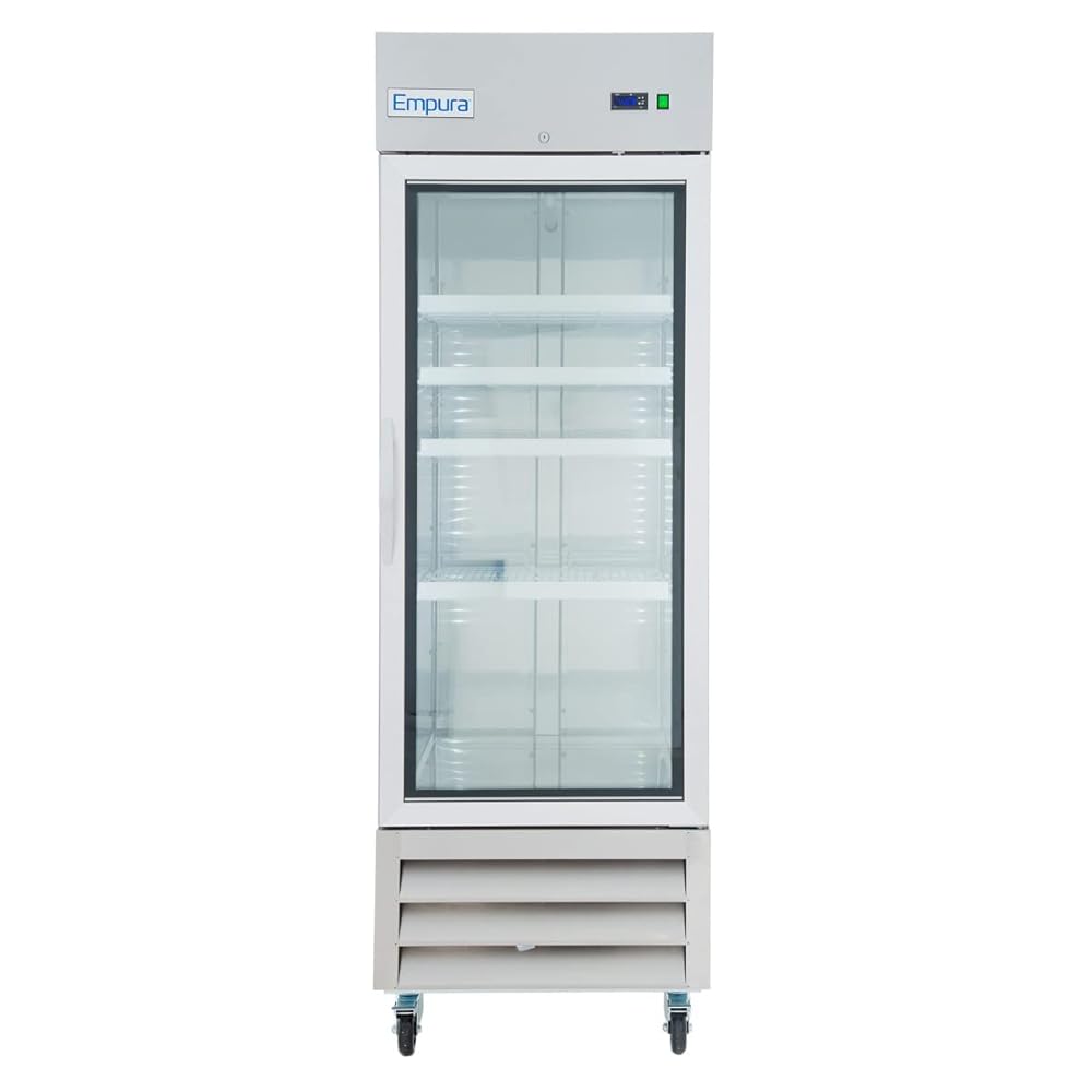 EMPURA 27" Reach-in Refrigerator with One-Swing Glass Door | Merchandiser Display Fridge for Convenience Store | 19 Cu. Ft. Capacity, (4) Shelves | 82.3"H x 26.8"W x 32.7"D, Stainless Steel, 115v, NSF