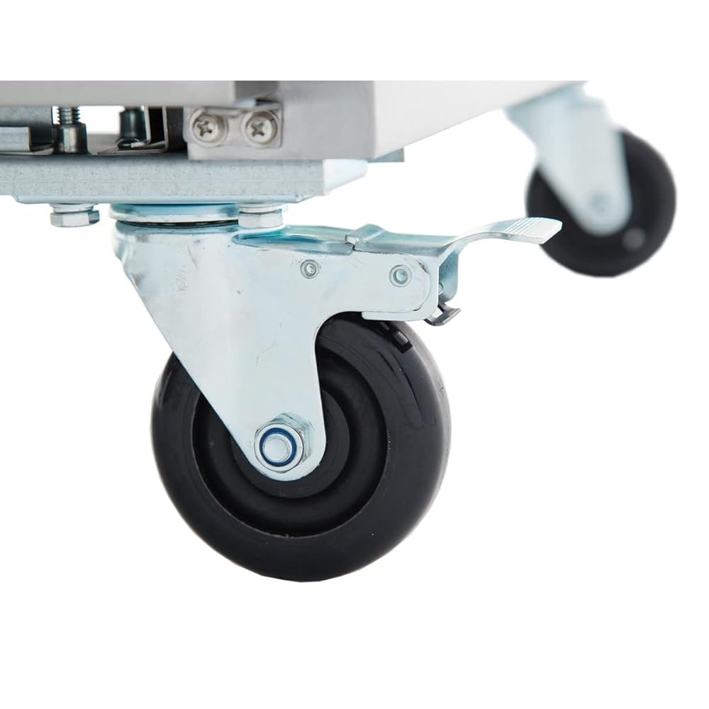 ADJUSTABLE STORAGE: Includes four heavy-duty epoxy-coated wire shelves that are adjustable, allowing for customizable storage configurations to accommodate various product sizes. These shelves are built to withstand the demands of commercial use, offering flexibility and durability.