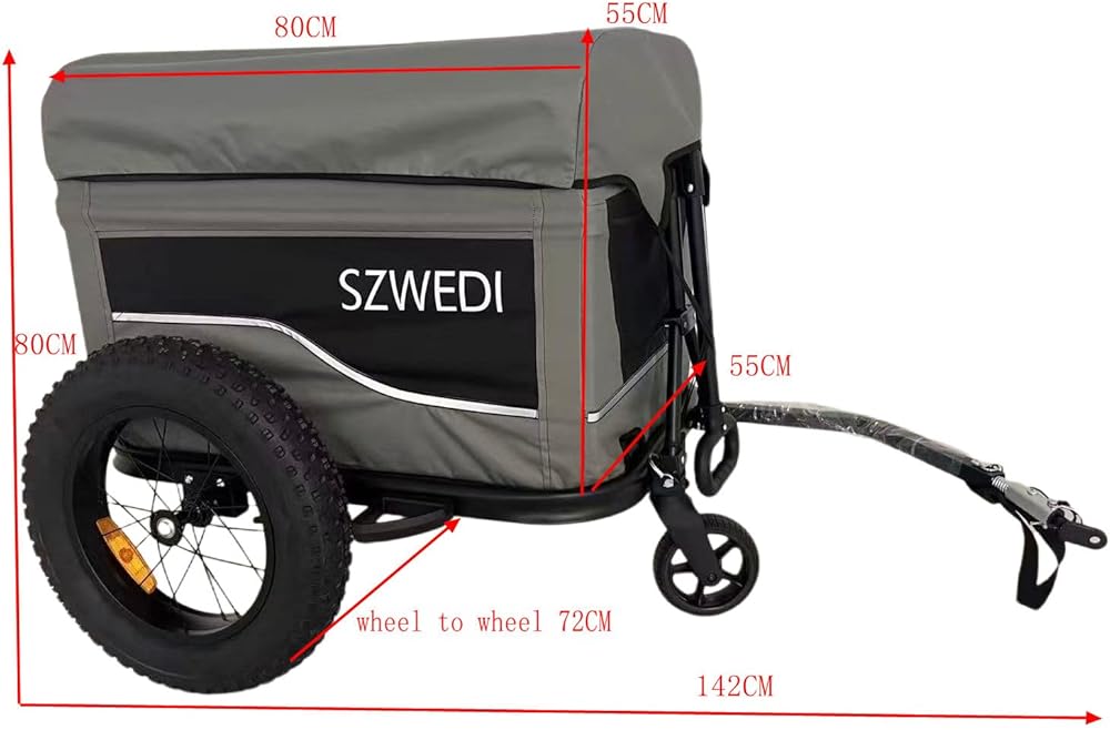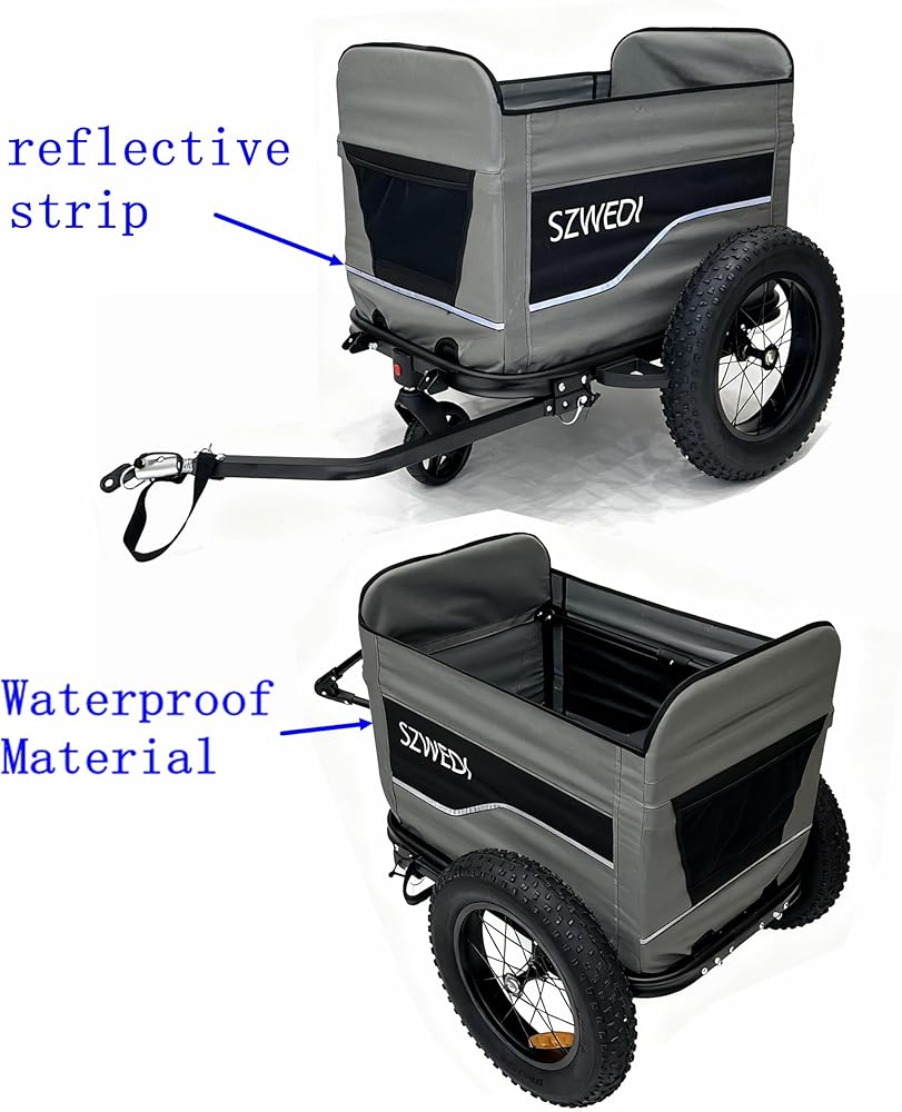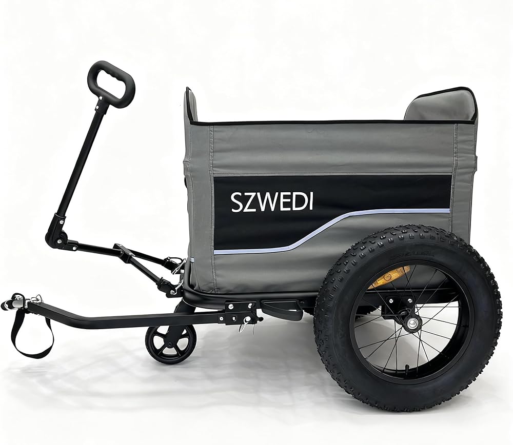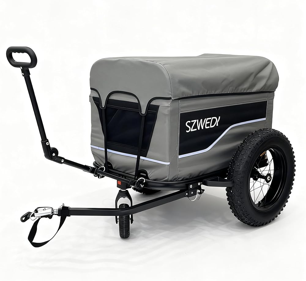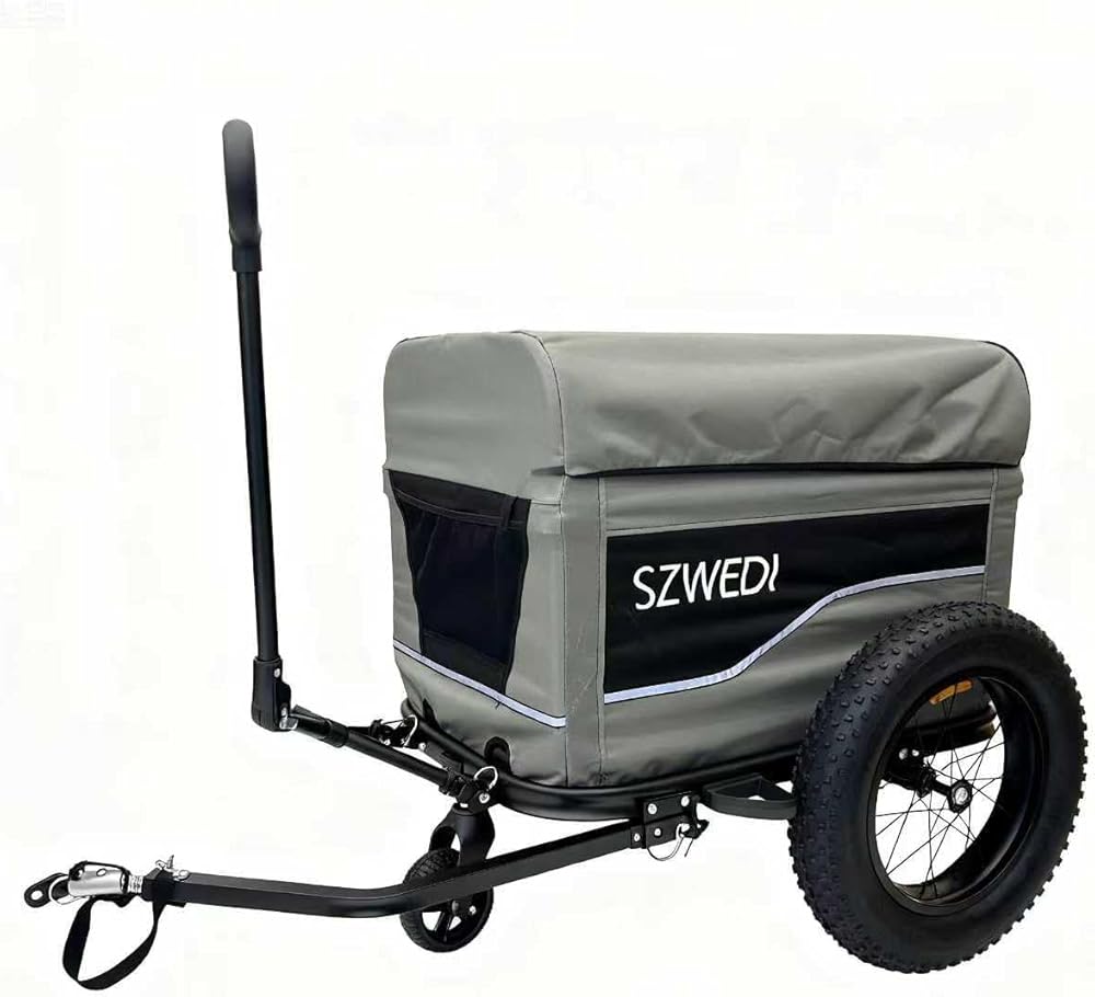 SZWEDI Bike Cargo Trailer&Hand Wagon,100 lbs Load Capacity, Heavy-Duty Bicycle Wagon Cart, Foldable Compact Storage & Quick Release with Universal Hitch, 16''x4.0 wheels/8" front swivel whee, (dimensions loading area:31x21x21inch)Perfect for practical towing and loading applications, this hitch combines functionality with user-friendly design.