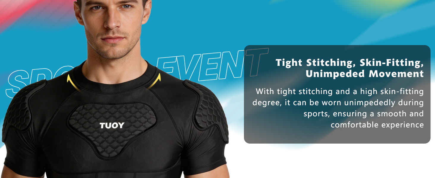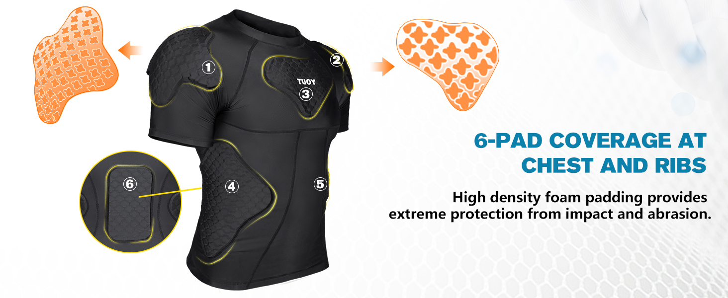 Comprehensive Protective Coverage: Equipped with thickened pads for chest, rib, shoulder, back and sternum, this compression shirt provides all-around shock absorption and impact resistance, effectively safeguarding your vital areas during intense sports.
