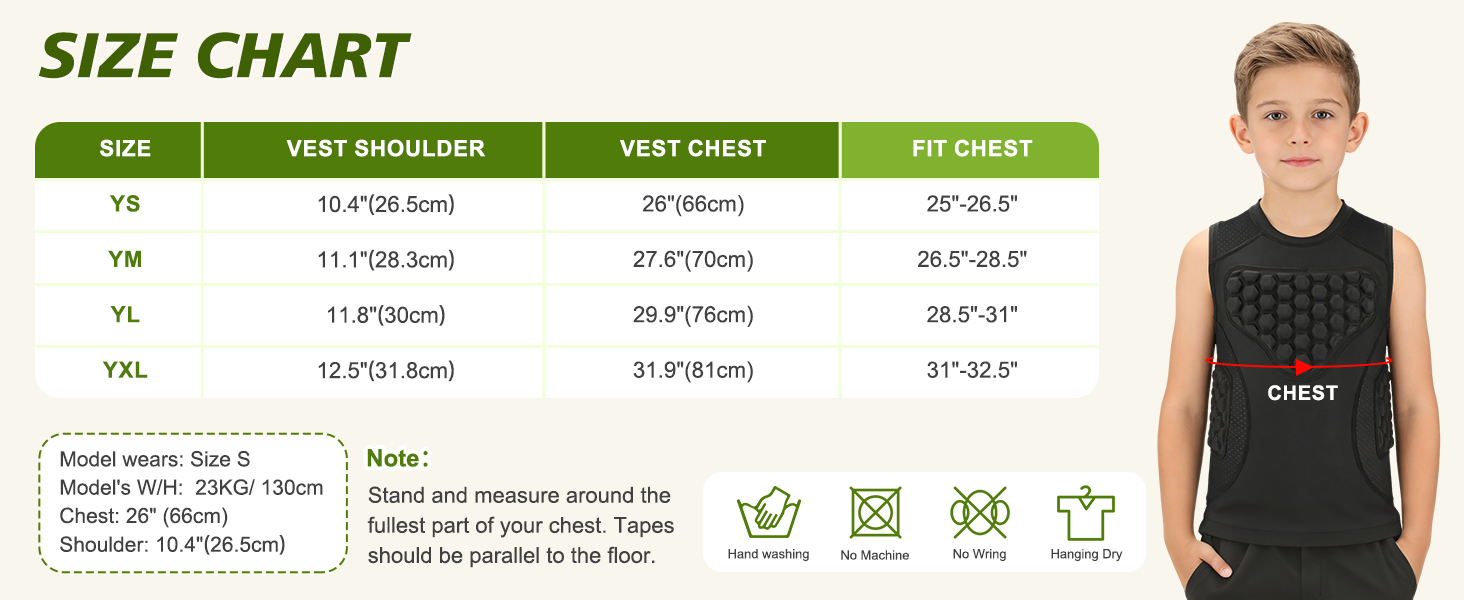 【Fit Chest Size】 YS is 25-26.5 inches, YM is 26.5-28.5 inches, YL is 28.5-31 inches, YXL is 31-32.5 inches. Notice: cool wash it gently by hand, hang/lay flat to dry, do not iron, tumble/spin dry or bleach.