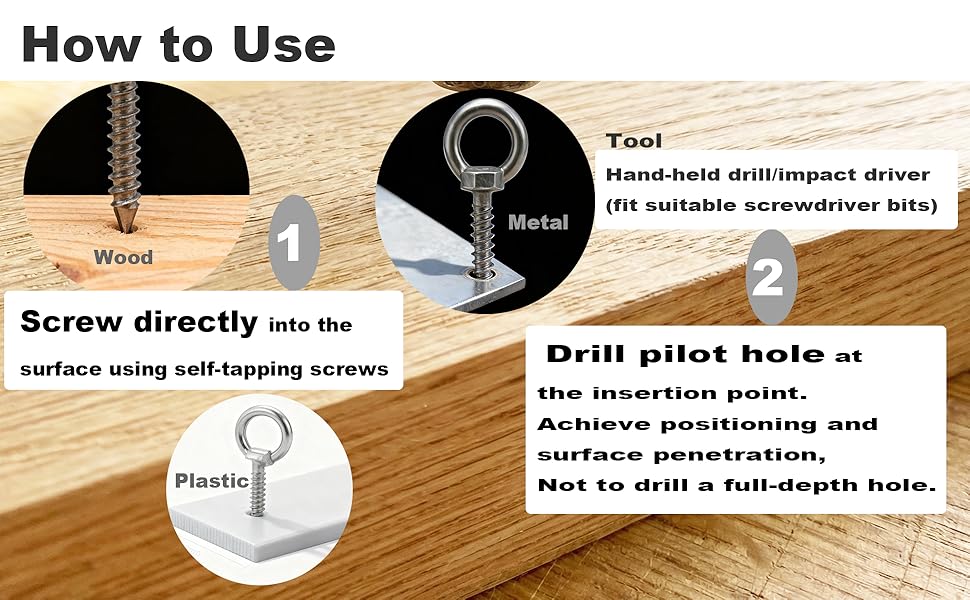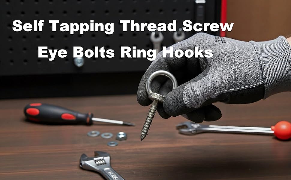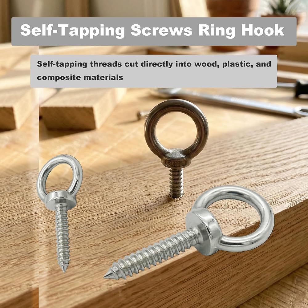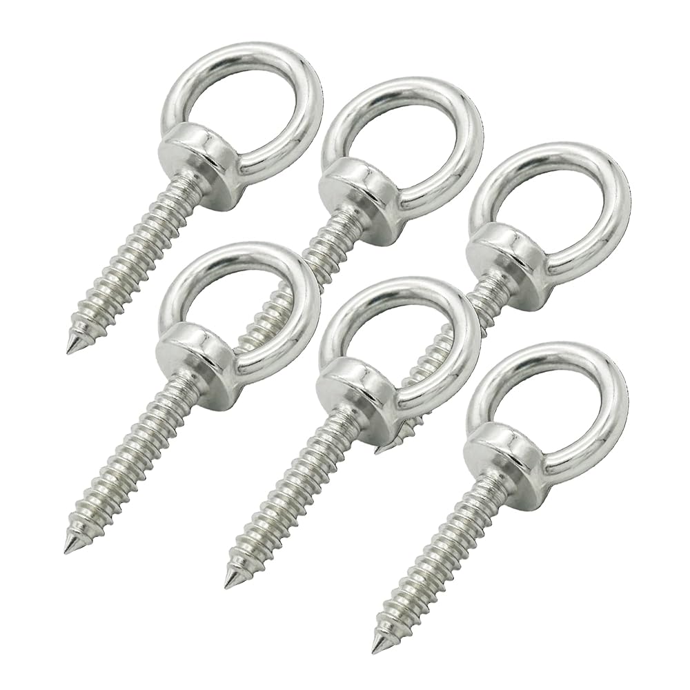 Including: 6 pcs 304 Stainless self-tapping screw eyebolts,304 Stainless Steel material,corrosion-resistant,Solid connections with a polished finish, no sharp edges