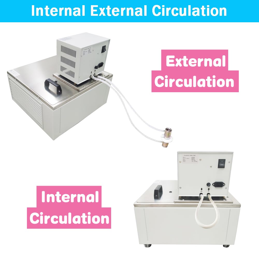 Internal and External Circulation: The constant temperature test can be conducted directly in the water tank, or the external circulation function can be used to guide the controlled constant temperature liquid in the tank to other devices through hoses connected to other devices.