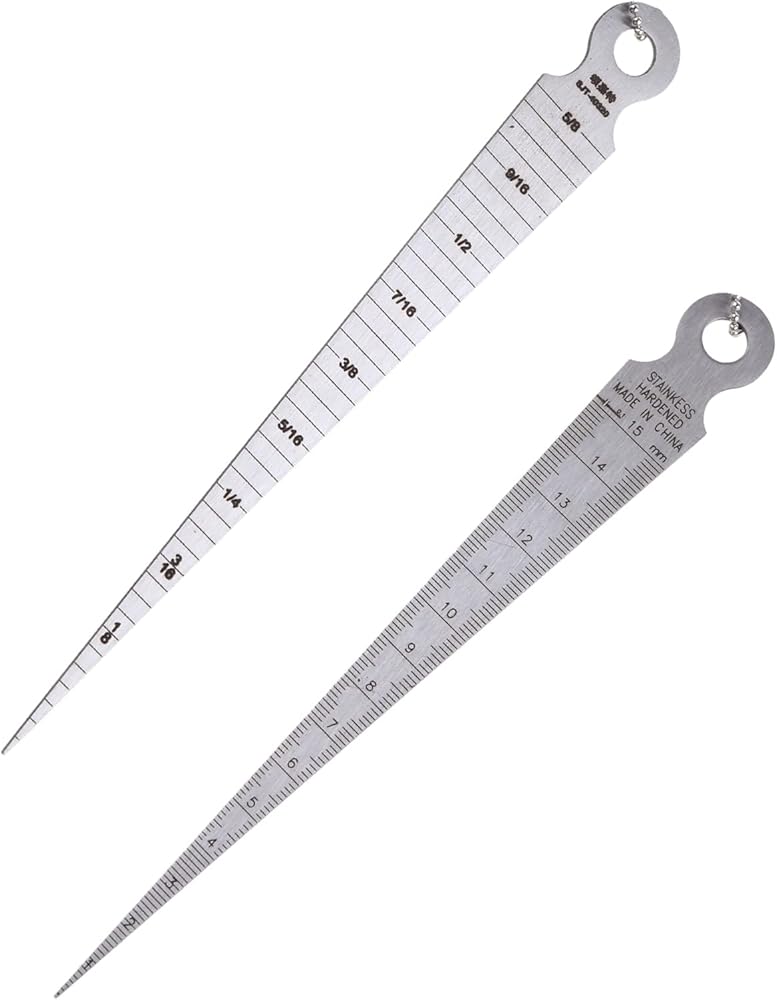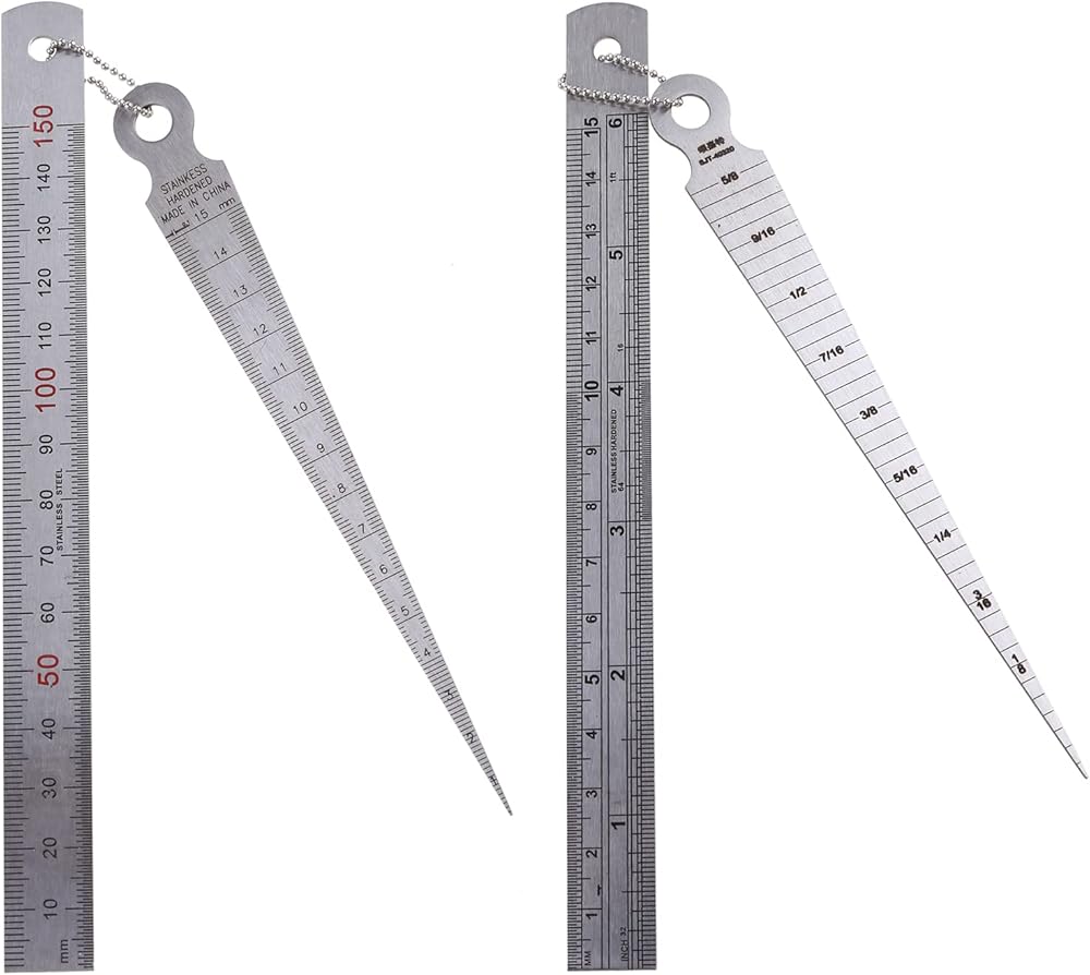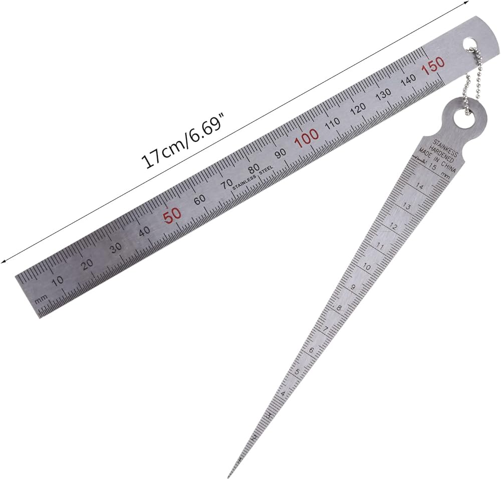 Stainless Steel Taper Welding Gauge Test Welding Taper for Gauge Depth Ruler Hole Inspection Tool 2 Pieces 1-15mm 1- taper rulerFeatures:This for Gauge designed with two parts for easy and convenient measurement, and part of them can be used to measure for and the other part is used to measure depth, you can use it to measure railway, electricity, ceramic sanitary ware, automotive windshield and die and This Taper Gage adopts with a clear mark line for easy and quick reading, and the accurate figures and increments are etched into surface, no worry about the line will be rub off after long for time use stainless steel material to ensure long lasting use, no worry about rusty and and wear resistance product.This Taper Welding Gauge designed with a pocket size and lightweight for easy carry and use, you can simply keep it in your bag.Mm and inch scale marks to meet your different measurement needs, very easy and convenient to make measurement.Specifications:Stainless SteelSize: 17cm/6.69inTaper for Ruler Measuring Range: 1-15mmStraight Ruler Measuring Range : 1-15cmPackage Includes:1X Taper for GaugeNote:Please allow 1-3cm error due to manual measurement. pls make sure you do not mind before you bid.Due to the difference between different monitors, the picture may not reflect the actual color of the item.