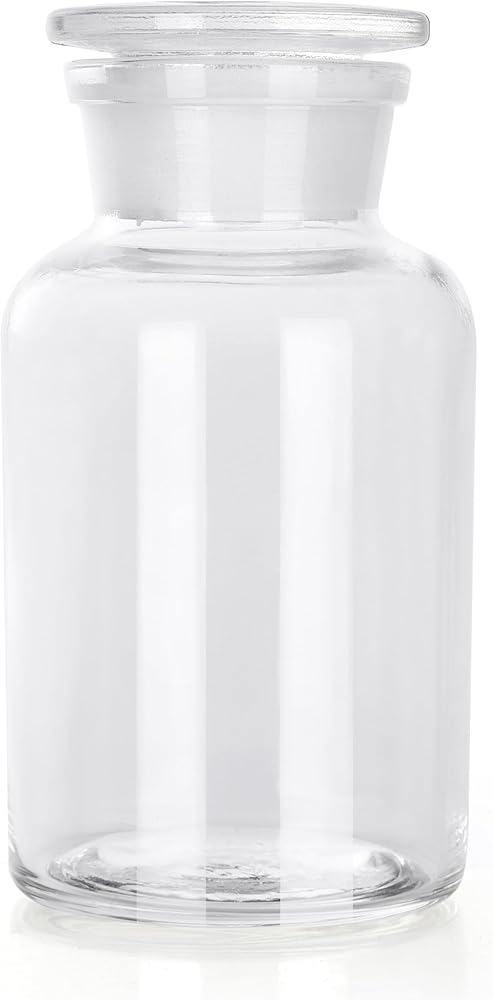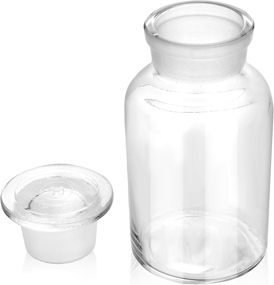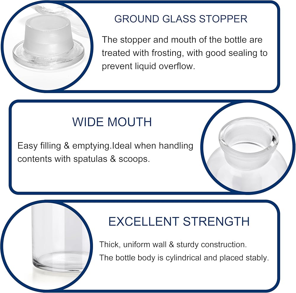 Package Including:1 x wide mouth clear reagent bottle and 1 X ground glass stopper.