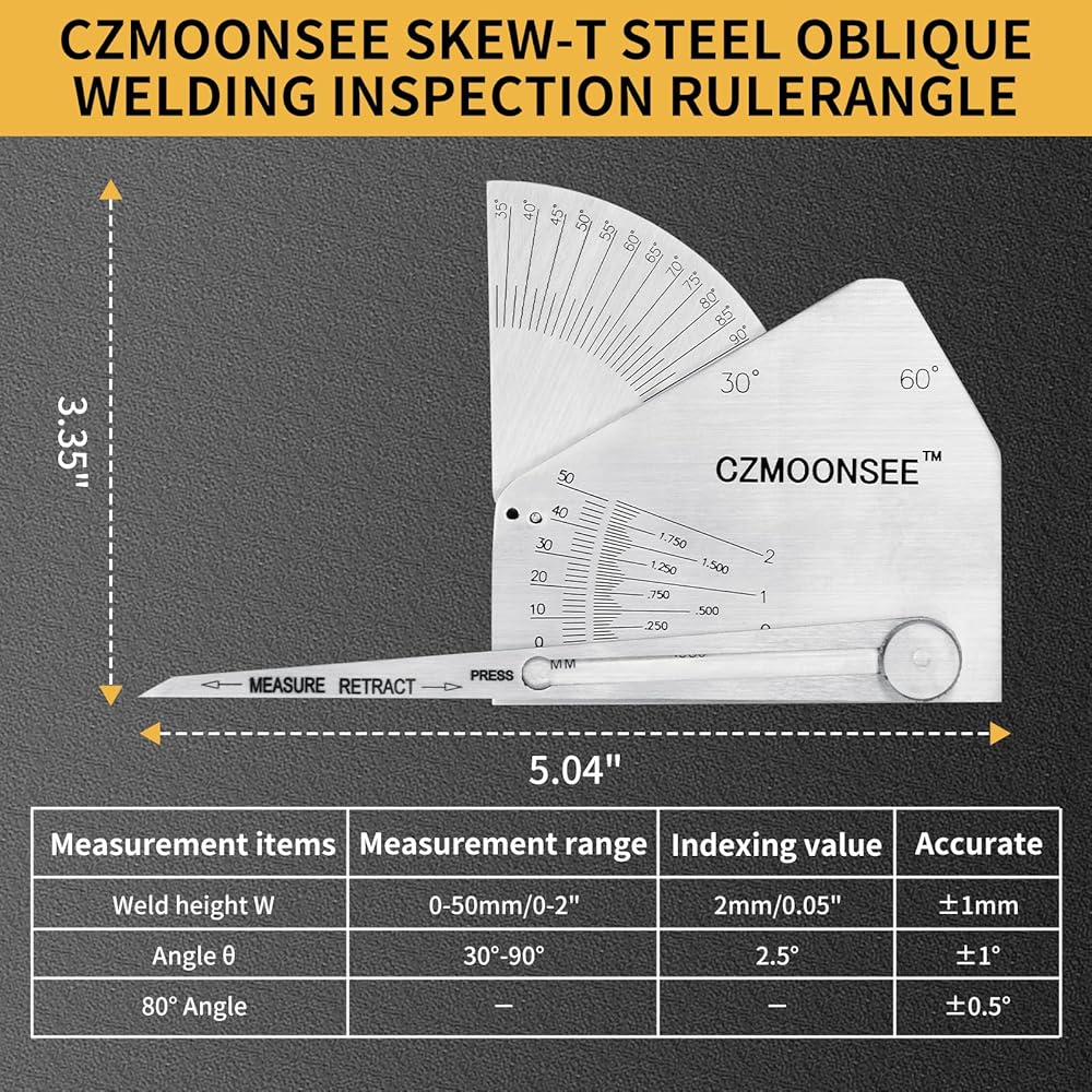 · Weld measurement angel of skewed joints: 30-90°,Metric and inch measurement systems.