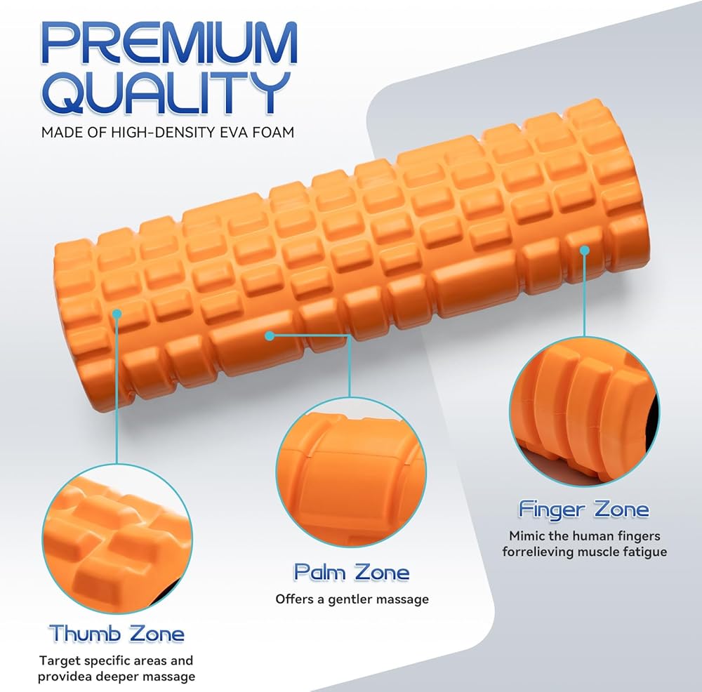 High Density Material : Our foam rollers are made of PVC and EVA material and it's good cushioning elasticity so will not lose its shape after heavy use; They're light weight, pressure-resistant, waterproof, sweat-proof easy to clean, durable