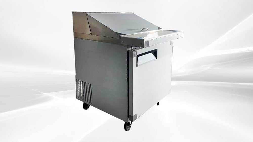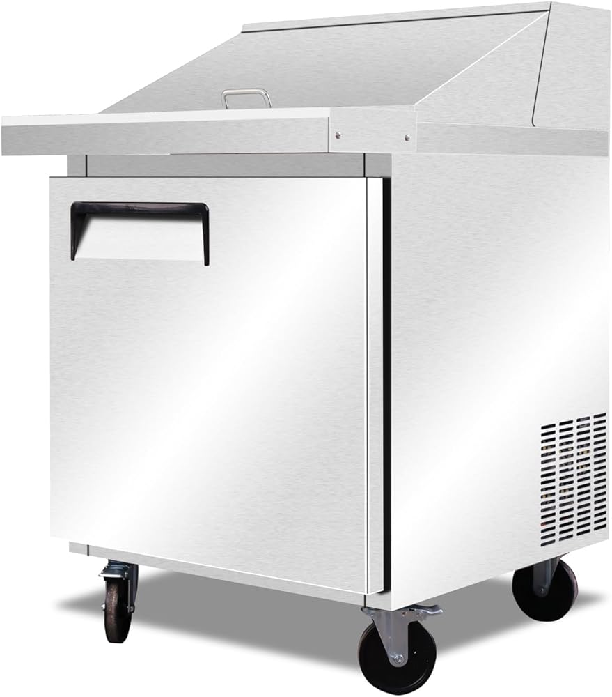 REFRIGERATED STORAGE: Beneath the workspace is additional 7.2 cuft One doors storage space. Because it's refrigerated at temperature of 33°F to 41 °F ( or 0°C to 5°C), the space is great for storing back-up ingredients, such as deli meat and cheese, as well as less common toppings. The epoxy-coated shelves are included and can each accommodate up to 90 lb. of weight, helping to organize your assorted supplies