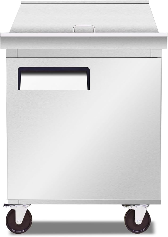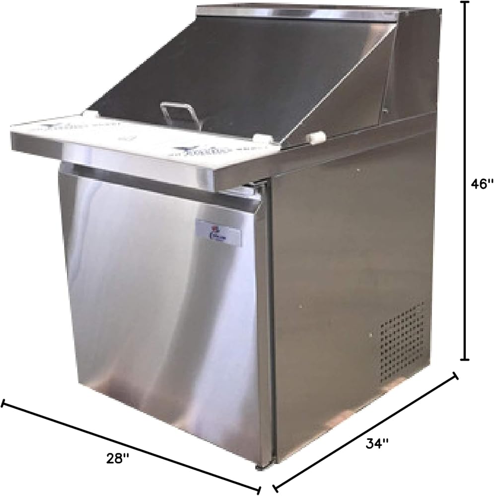27" NSF Sandwich Prep Table Stainless Steel, Size 28"L, x 34"D, x 42.5"H / Cubic Feet 5.7 Caster Wheels / 12 Pans / Cutting board