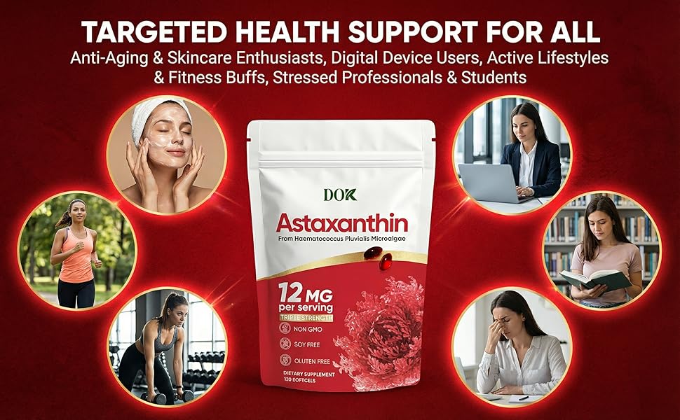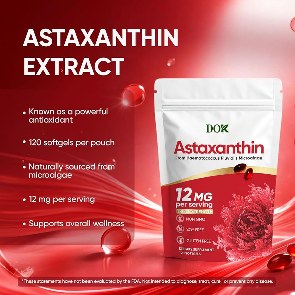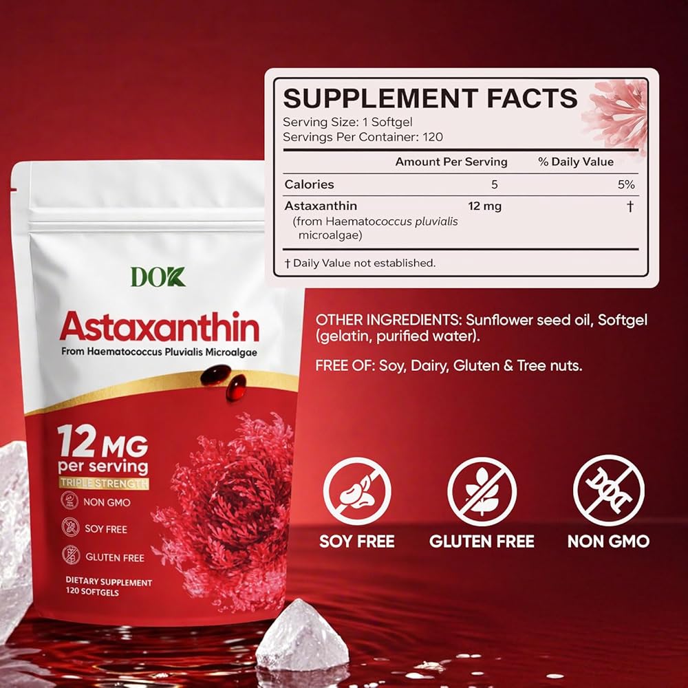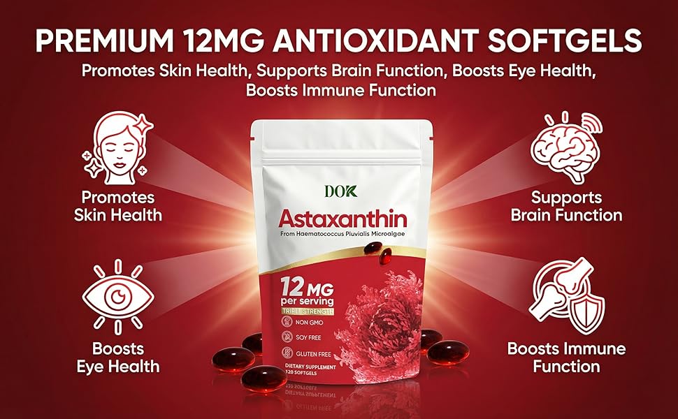 - 【12mg Antioxidant】Optimize absorption with our triple-strength astaxanthin 12mg formula
