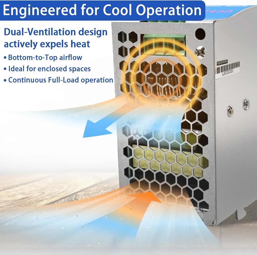 【Secure DIN Rail Mounting】——24 volt dc power supply is designed with standard DIN rail mount, this 240W power supply allows for quick, tool-free installation on 35mm rails, saving valuable space in control cabinets and electrical enclosures