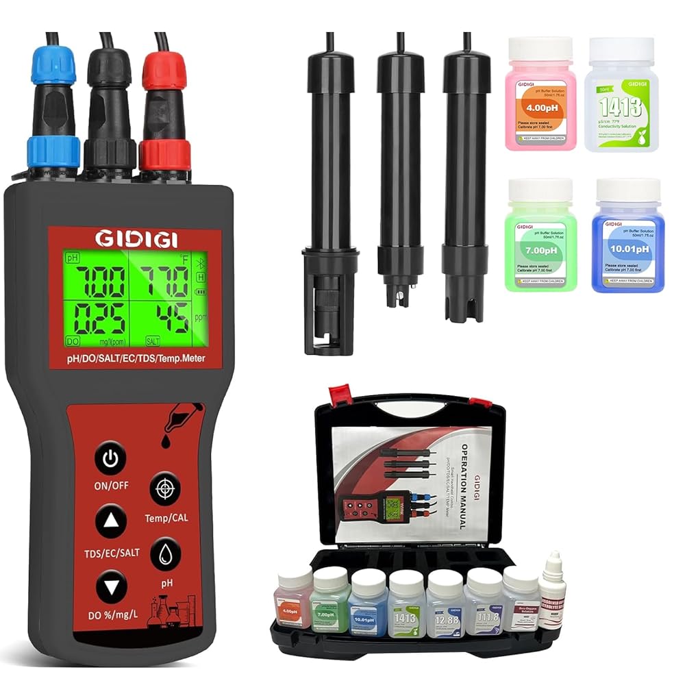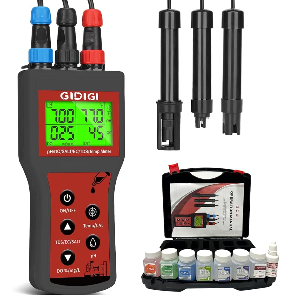 【Future-Proof Durability & Outdoor-Ready Portability】 Built for rugged adventures, the GIDIGI Portable Dissolved Oxygen Meter features a shockproof case, longtime battery life, and an anti-fade LCD readable under sunlight. Test mountain stream DO for fishing, check pool salinity post-storm, or audit hydroponic farm water—all with military-grade drop resistance. While replaceable ph meter for water hydroponics probes cut long-term costs. Ideal as a pond oxygen meter or environmental monitor.