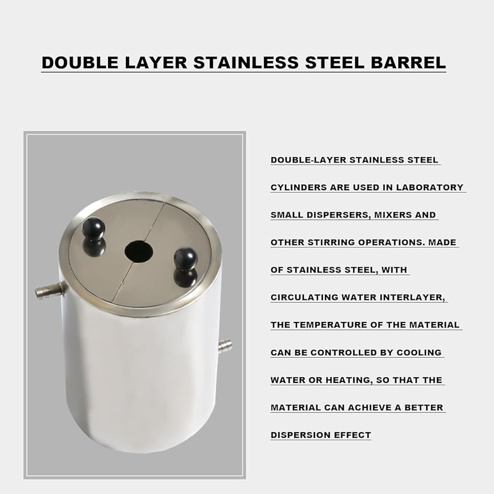 ✔ 1.5L stainless steel barrel- special barrel for laboratory dispersant, which can be connected to circulating water, high-quality stainless steel, double-layer structure design, easy to use as a good helper in the laboratory, durable and excellent quality assurance