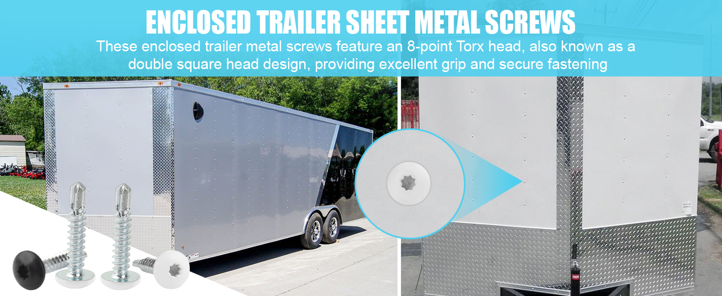 Widely Applicable: The self tapping trailer screws are designed for use on various types of trailers, including enclosed trailers, cargo trailers, RVs, campers, and motorhomes. They are ideal for securing exterior skin panels effectively and reliably