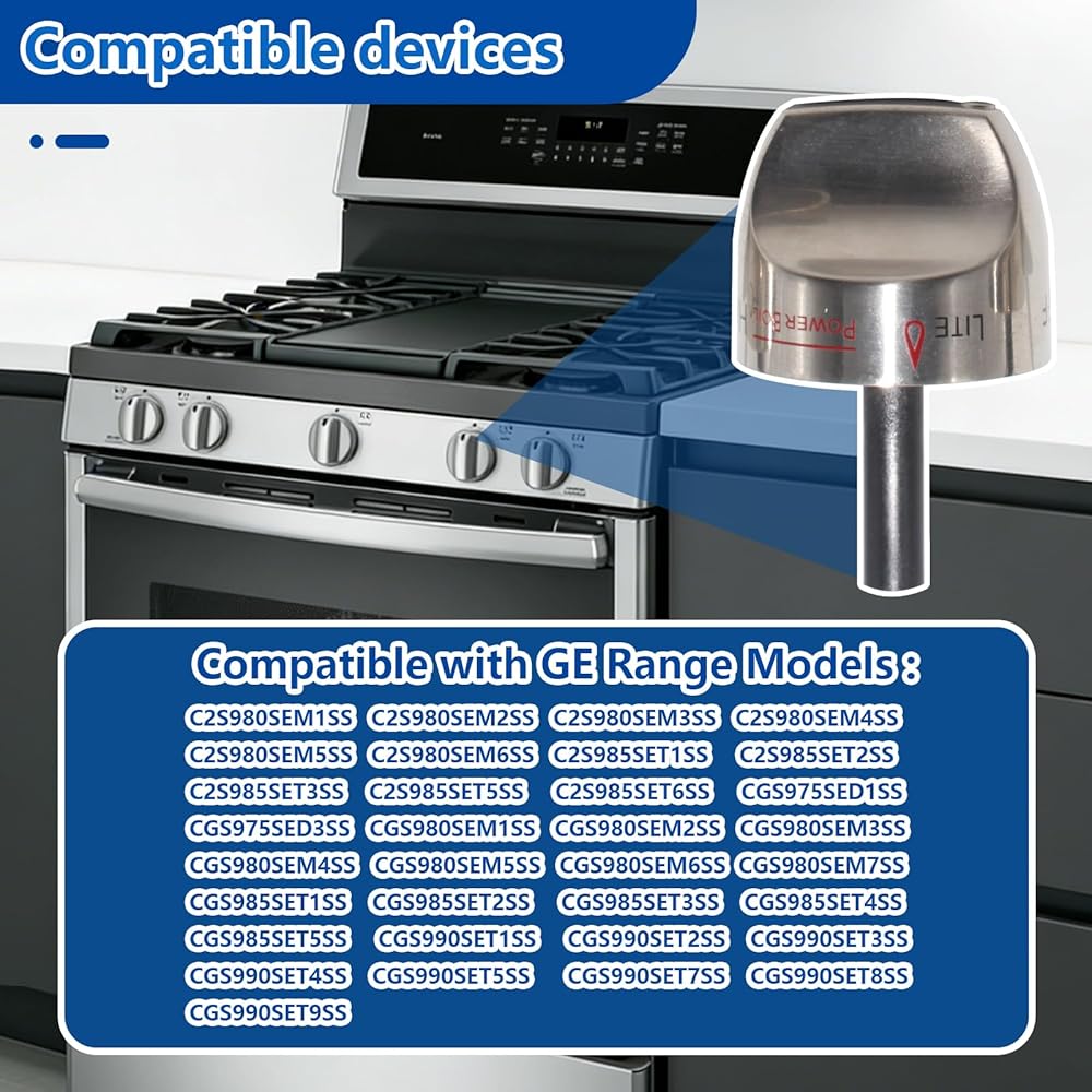 Compatibility: The stainless steel stove knob is compatible with brands such as General Electric (GE) and Hotpoint, replace WB03K10243, WB03K10266