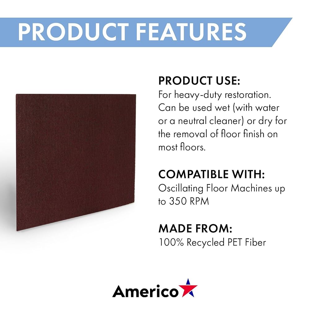 14"x20" Maroon X heavy duty wood floor restoration pad. 10 pads per case.