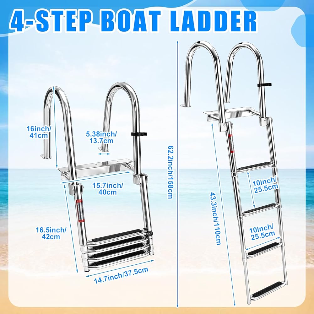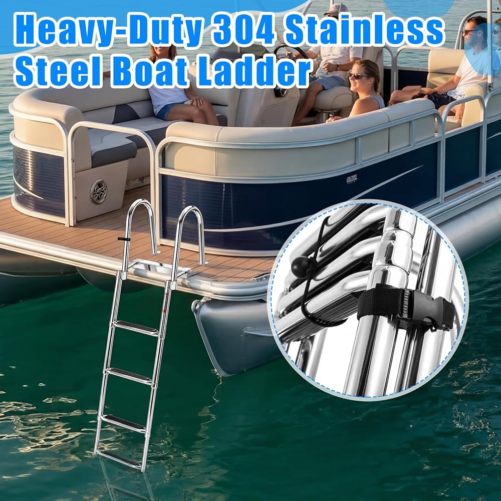 Heavy Duty Marine Grade Stainless Steel: made of 304 stainless steel, this pontoon boat ladder offers excellent corrosion resistance, rust-proof performance, and long-lasting durability in both freshwater and saltwater marine environments; Ideal for pontoon boats, docks, decks, and swimming platforms